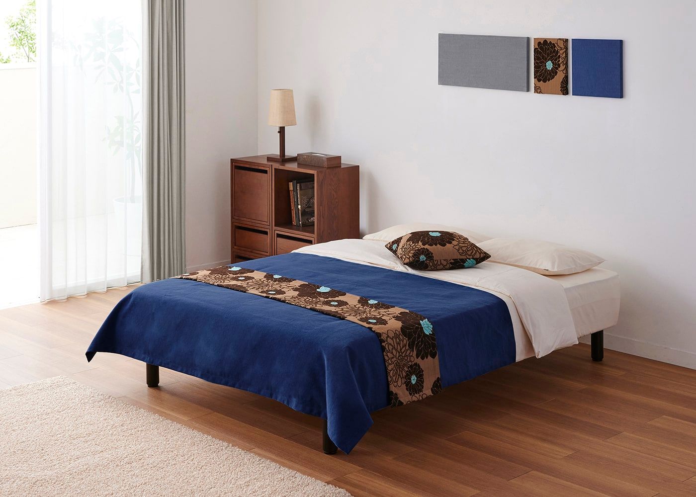 CL ブルー(ベッドスプレッド)+PU ブラウン(ベッドスロー)