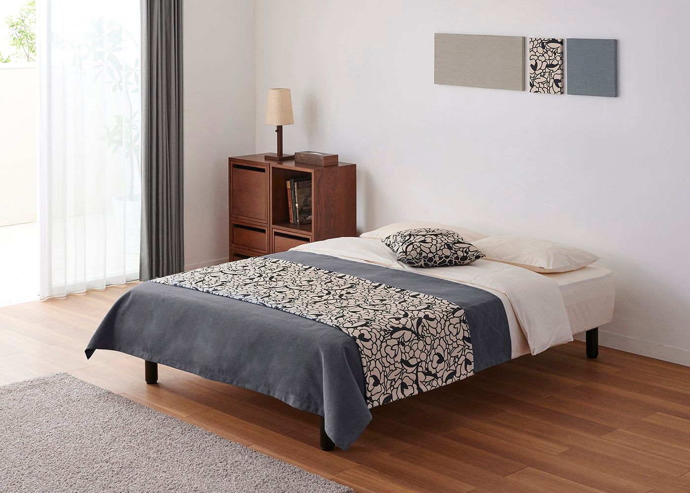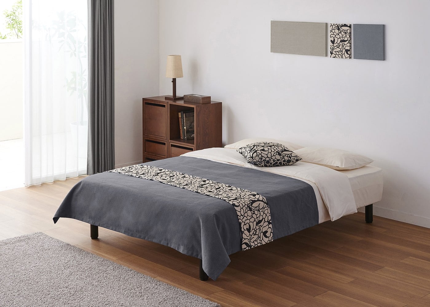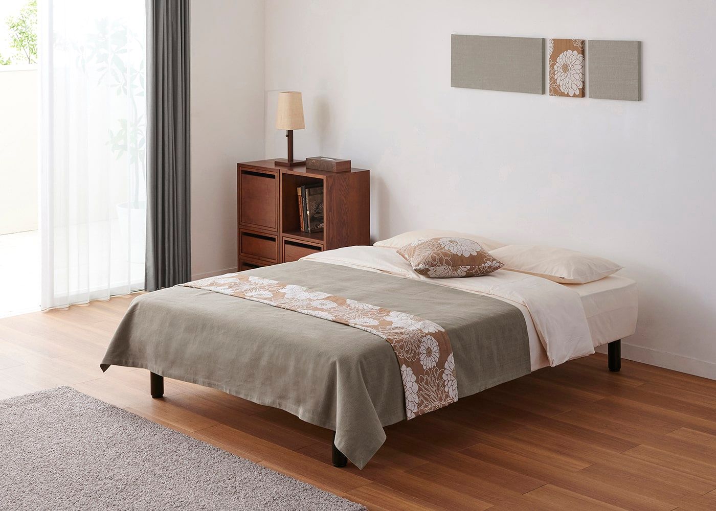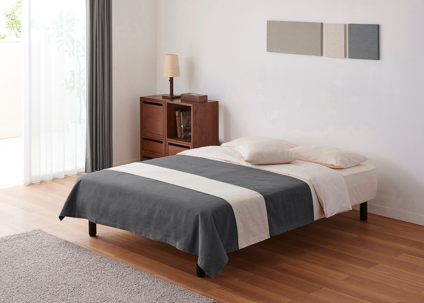 KS ベージュ(ベッドスプレッド)+CL スモーク(ベッドスロー)[注]撮影環境・PC画面によって素材の色を表現できない場合があることをご了承ください。