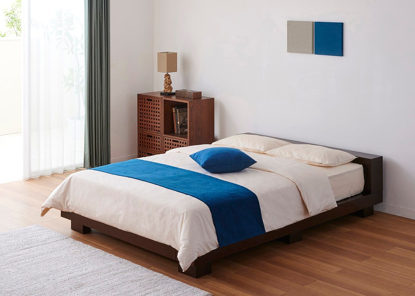 ベッドスローは気軽に寝室を華やかに見せ、ホテルライクな演出も可能です。更に布団の保温性を高めたり、布団の汚れを守る効果も期待できるでしょう。幅はシングル~クィーンの4サイズ、奥行は見せ方に合わせて300、450、650mmの3つから選べます。