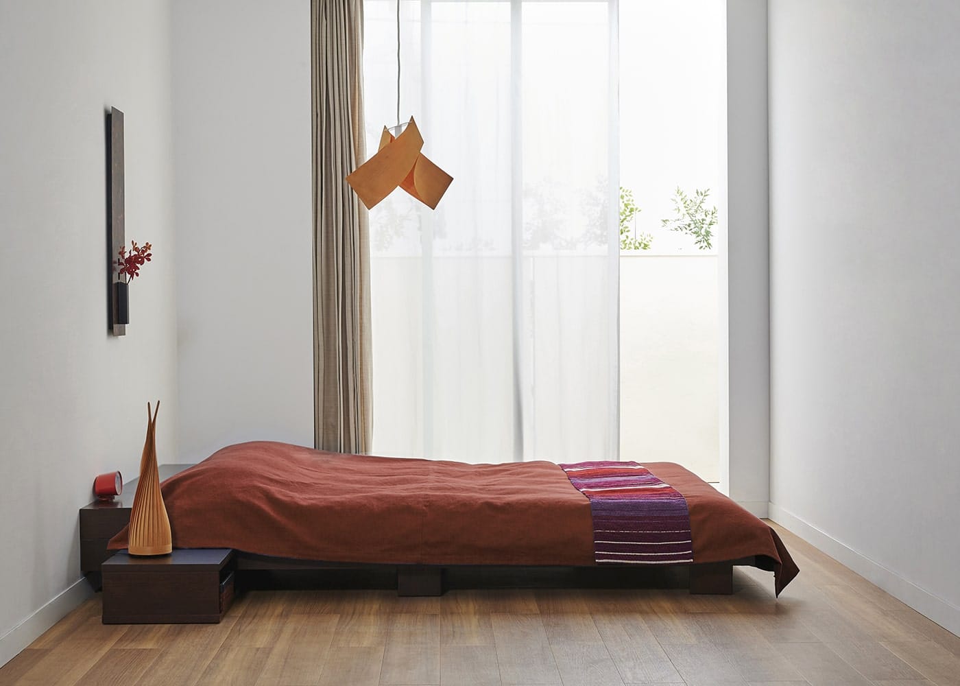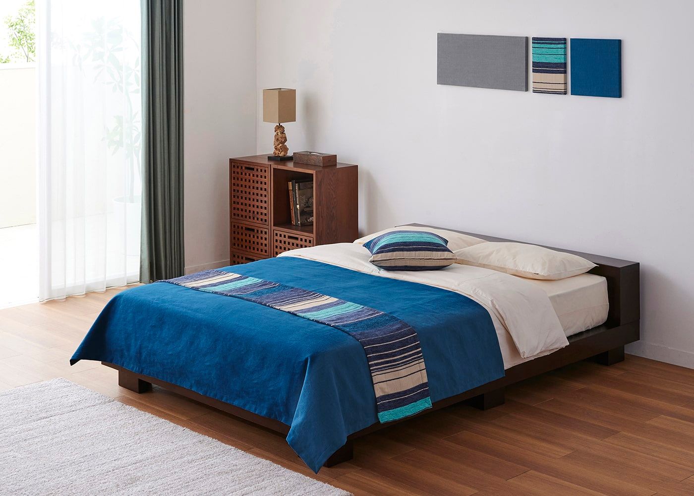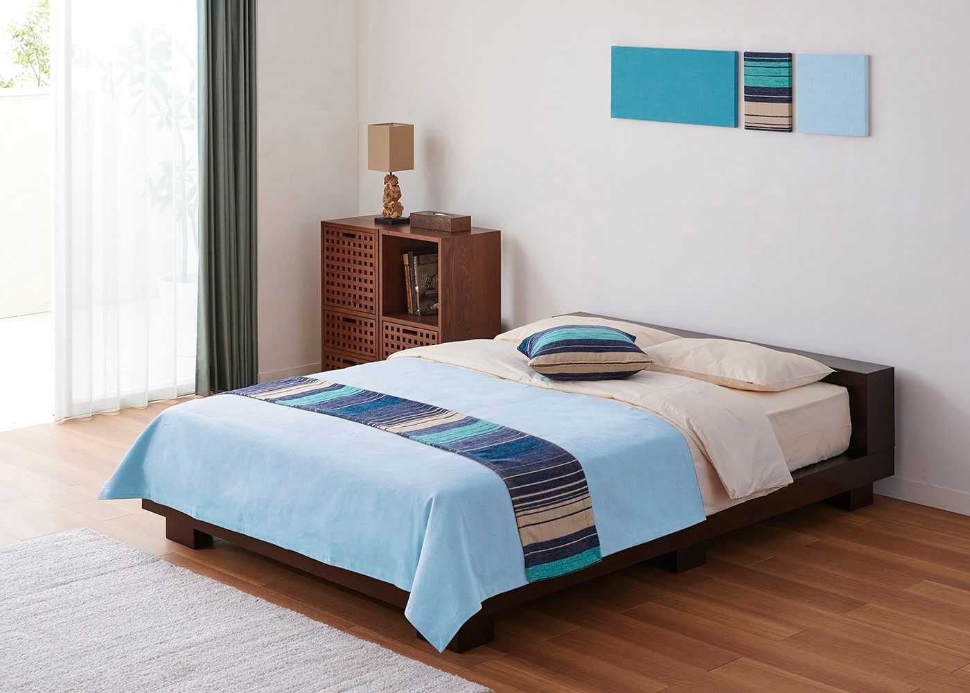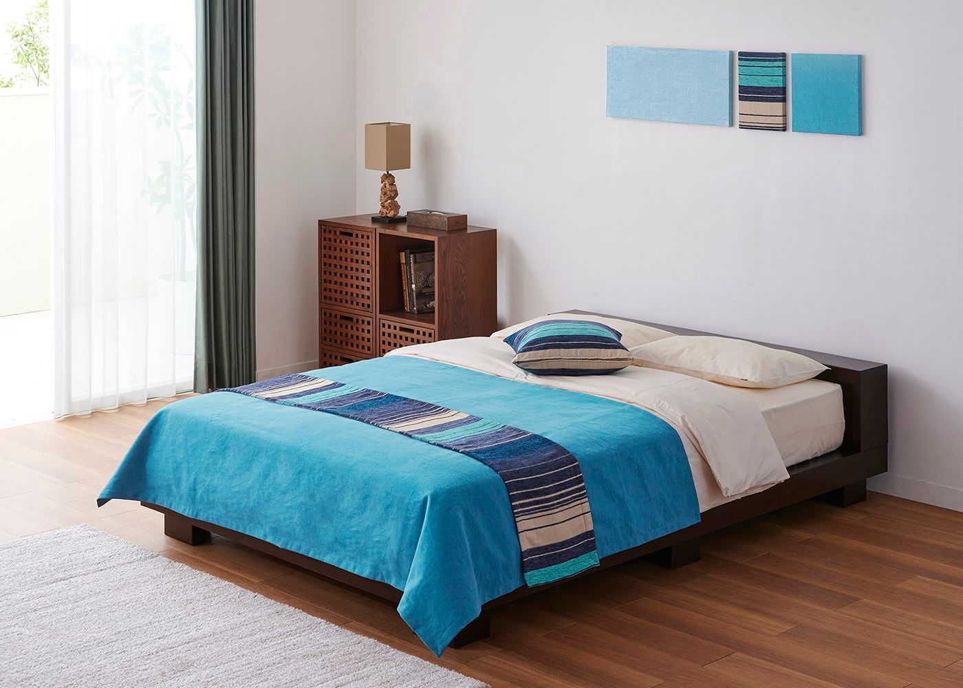 ここからは、ベッドスロー (アイランド)に多彩な寝室インテリアをプラスした組み合わせ例をご紹介。理想の寝室づくりの参考にしてください。(写真はベッドスプレッド 奥行1300