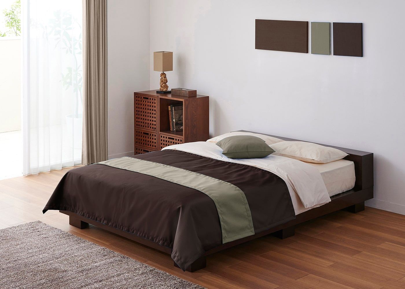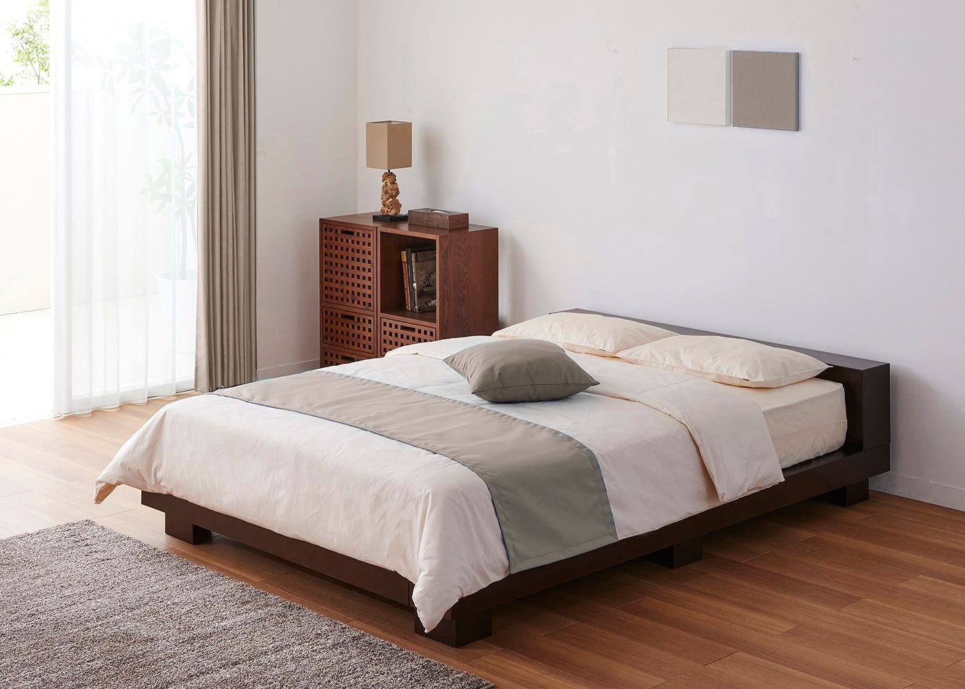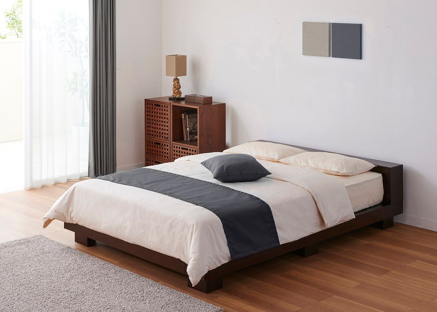 ベッドスロー (テンポテスト)はベッドサイズに合わせて、シングル~クィーンの4サイズ展開。また、見せ方や使い方に合わせて、奥行300 / 450 /