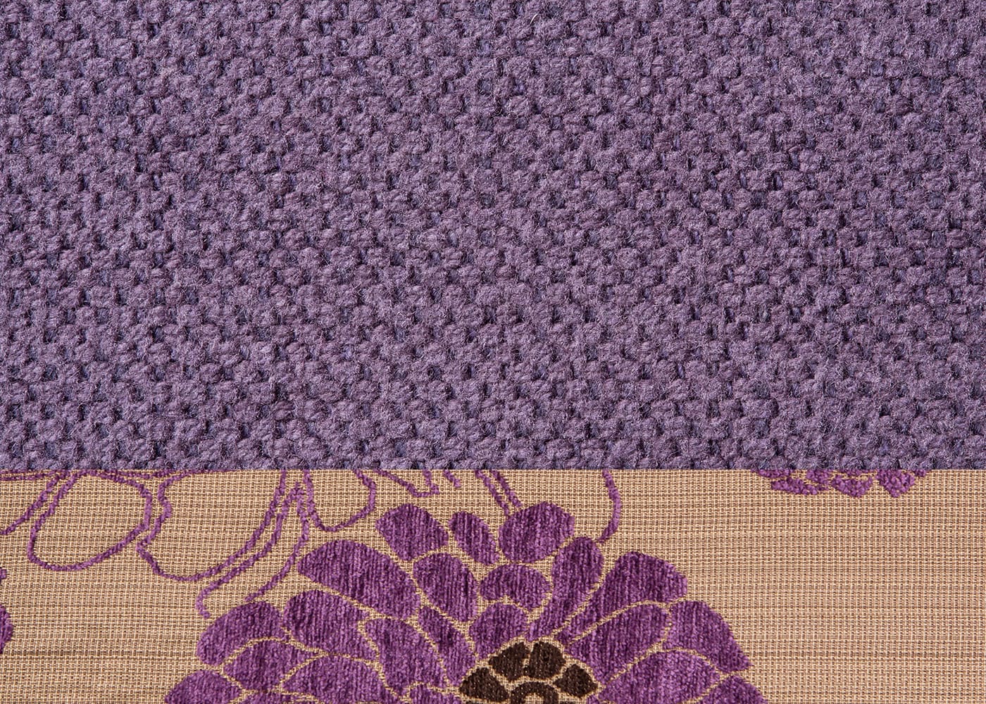HBパープルのセット例。ベッドスローが細身のためさりげないアクセントがプラスできます。同じ生地の壁面装飾を取り入れたり、相性のよいラグ・カーテンを合わせて自分だけの寝室を作り上げてみましょう。