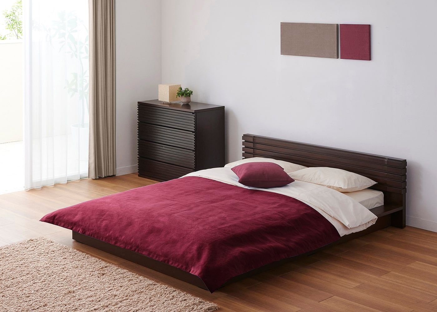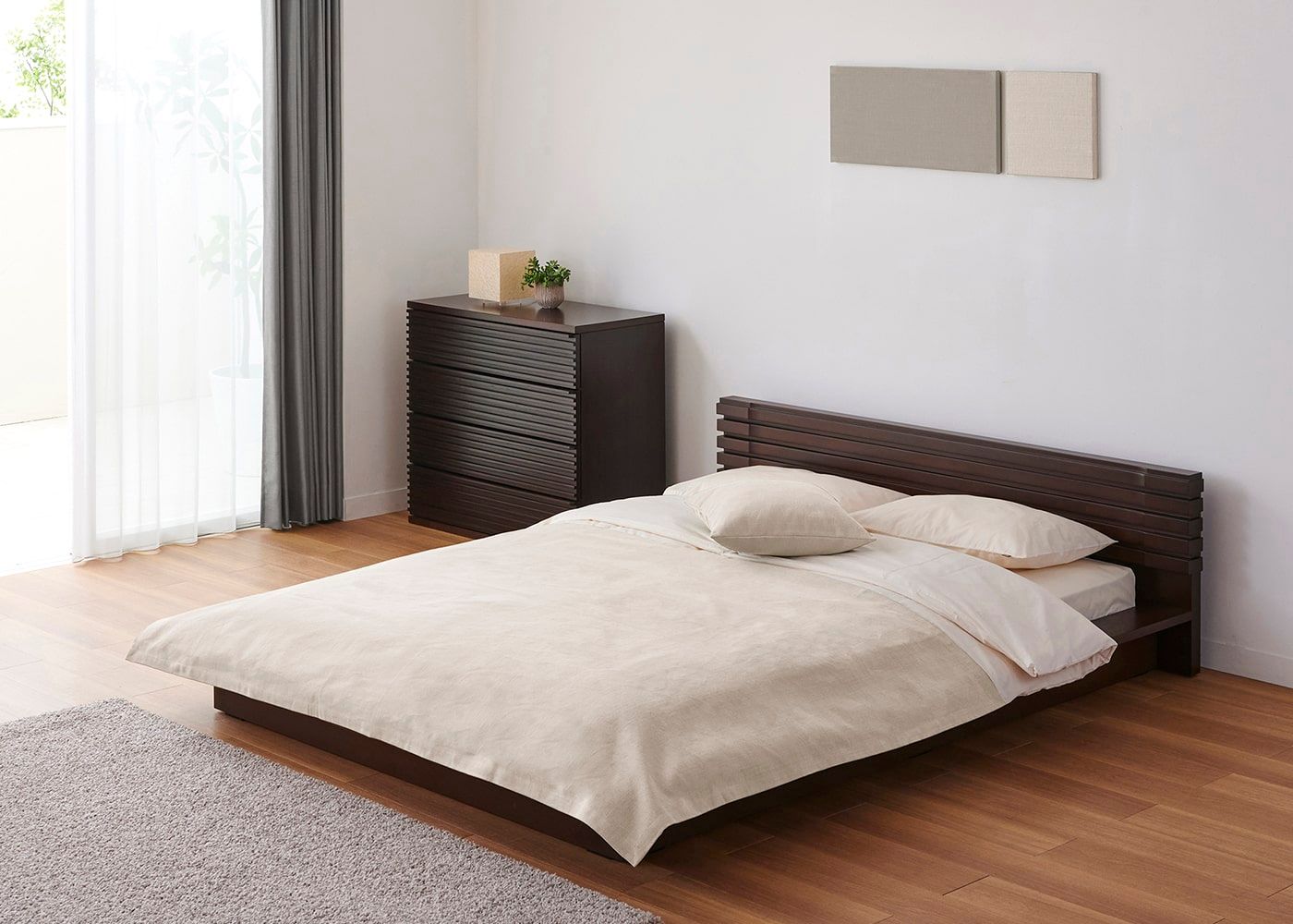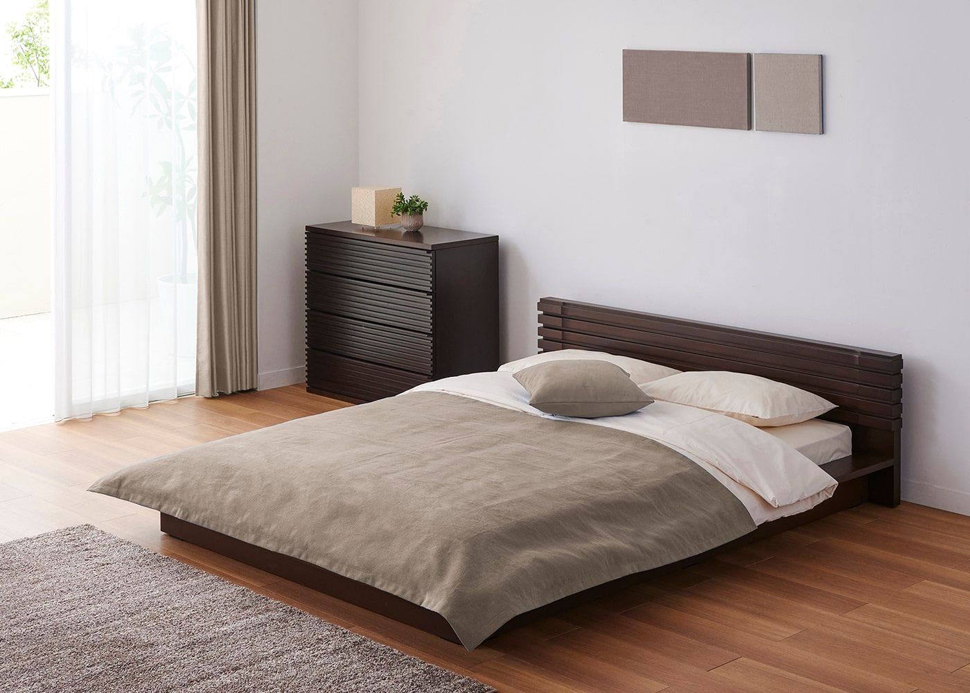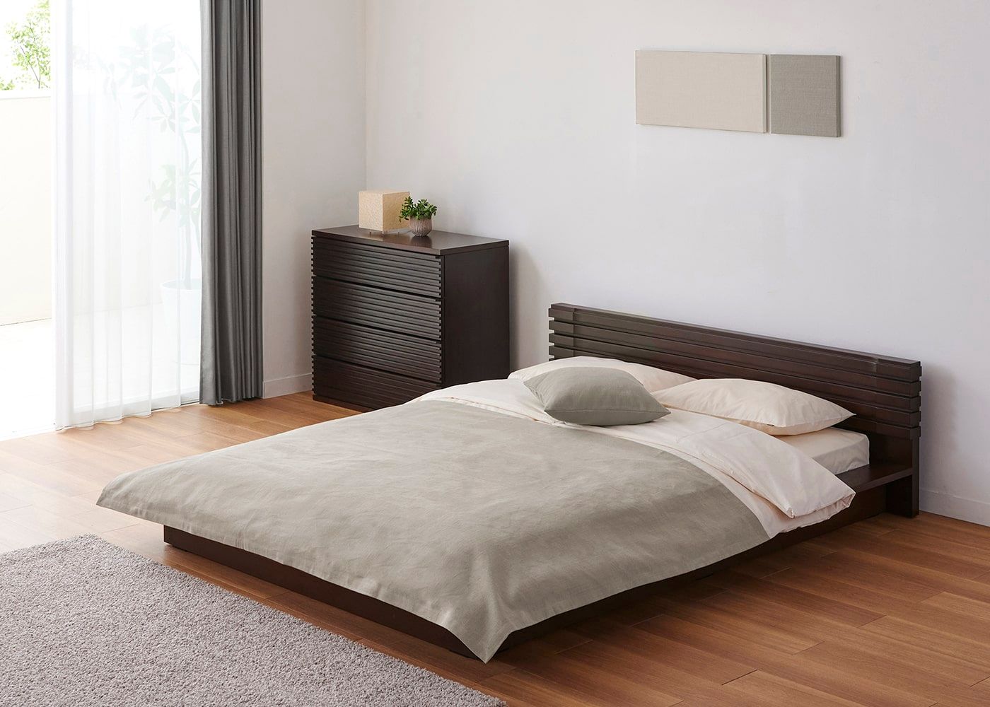 ホテルライクな寝室作り 寝室をホテルライクなリゾートコーディネートで整えることで、非日常感のある快適なスペースに変えることができるでしょう。 詳細ページへ ベッドフレーム 「ホテルライク」「開放感」 「癒し」 「収納力」をコンセプトにした4タイプのベッドからお気に入りを見つけてください。 詳細ページへ レイアウト・家具配置 身体を休める、書斎と兼用したい、収納力を充実させたいなど、ライフスタイルと合うレイアウトや家具選びを考えてみてください。 詳細ページへ 快眠マットレス 「コイルタイプ」、「スプリングタイプ」など様々な種類のマットレスをご用意しています。あなたに合った寝心地で選びましょう。 詳細ページへ 布団・毛布・枕・カバー 寝具は季節に応じて選び、組み合わせて使うことが重要です。「布団」「毛布」「ベッドパッド」 などの特長を解説します。 詳細ページへ 寝室のインテリア ベッドや寝具以外のインテリアにもこだわってみませんか?おしゃれな寝室を叶えるたくさんのインテリアをご覧ください。 詳細ページへ 寝室の模様替え 寝室は家具以外の部分を変えるだけでも、簡単に模様替えできます。気軽にベッドファブリックや他の装飾で模様替えしてみては? 詳細ページへ ベッドサイズ・一覧表 ベッドサイズは使用人数や体格、部屋の広さから検討していきます。ライフスタイルに合わせたベッドサイズを選びが大切です。 詳細ページへ