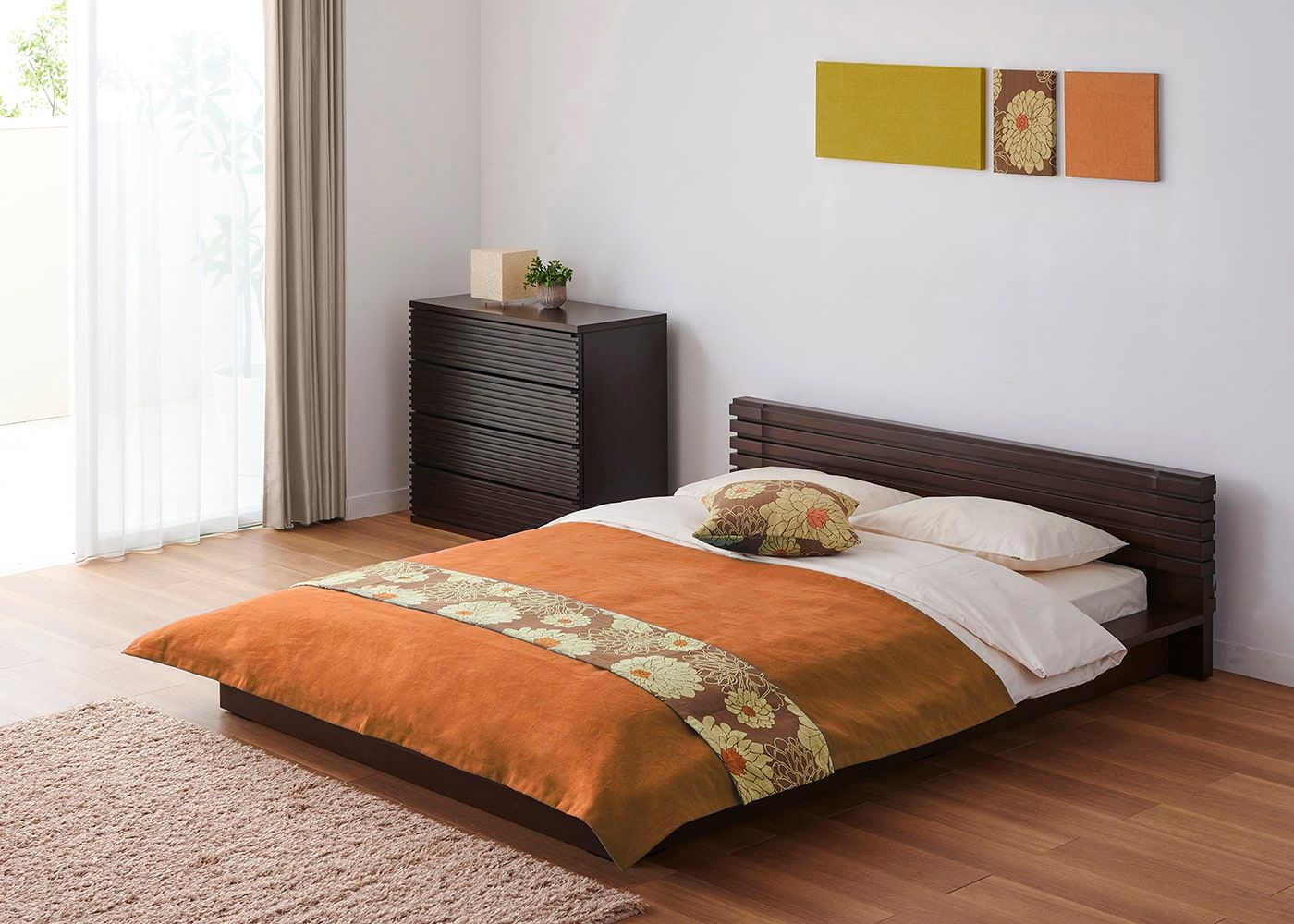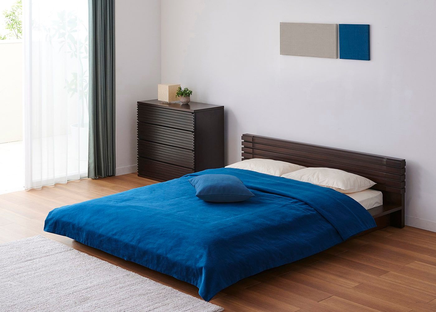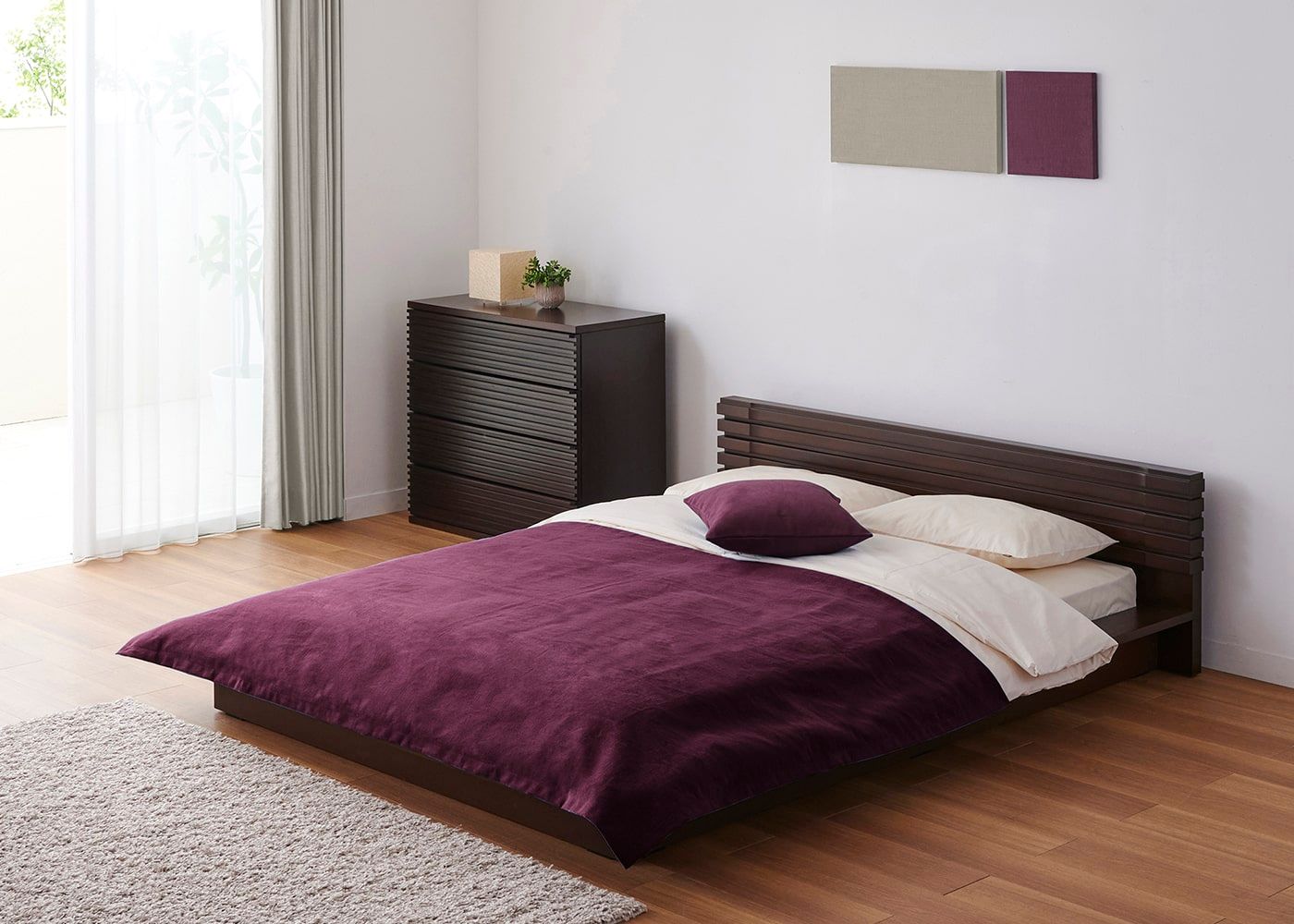 寝室のコーディネートや模様替えをこだわりたい時は、足元にベッドスロー(別売り)も添えてみては?