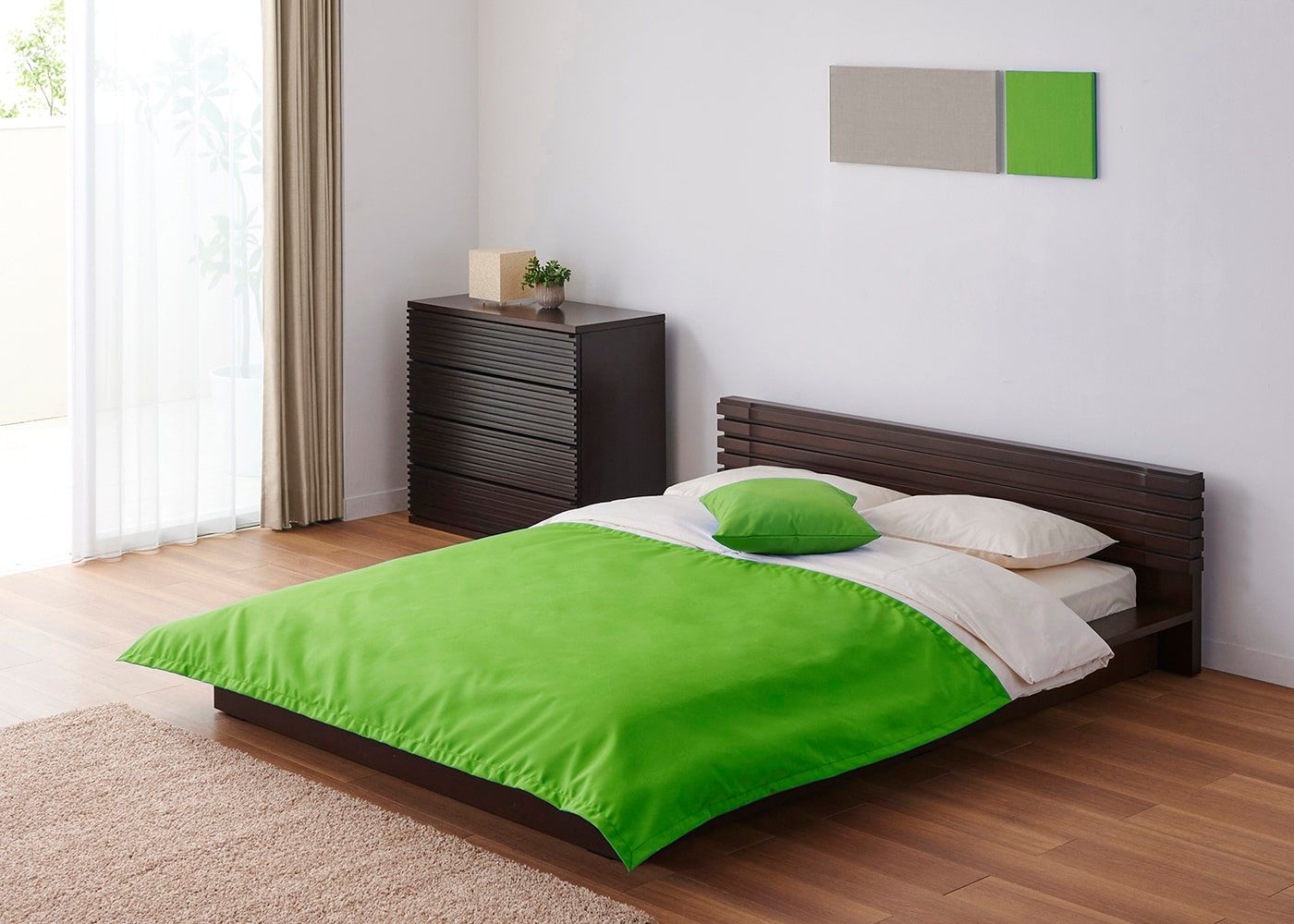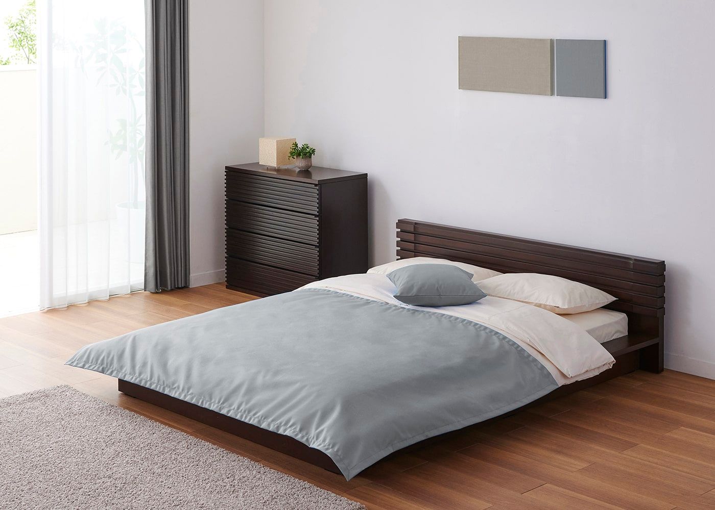 ベッドスプレッドは寝室を華やかに見せ、ホテルライクな演出も可能です。更に布団の保温性を高めたり、布団の汚れを守る効果も期待できるでしょう。幅はシングル~クィーンの4サイズ、奥行は使い方に合わせて1300と2300mmから選べます。