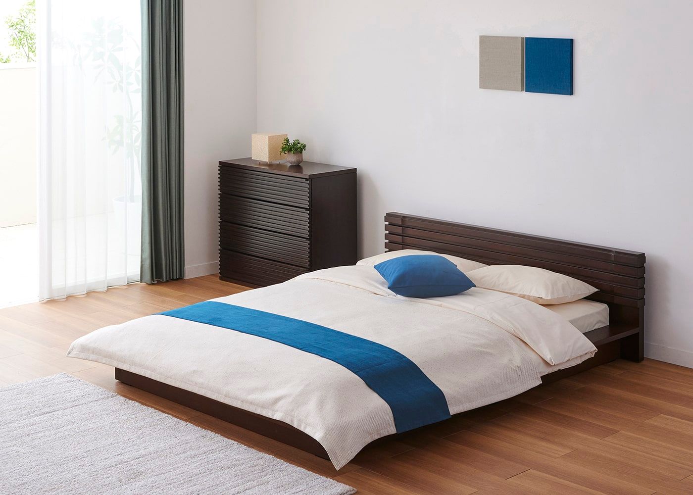 ベッドスローは気軽に寝室を華やかに見せ、ホテルライクな演出も可能です。更に布団の保温性を高めたり、布団の汚れを守る効果も期待できるでしょう。幅はシングル~クィーンの4サイズ、奥行は見せ方に合わせて300、450、650mmの3つから選べます。