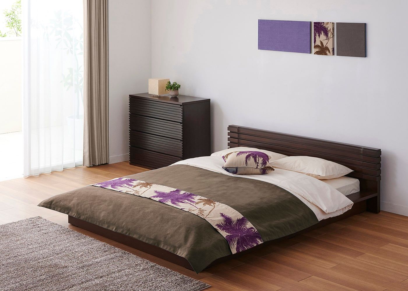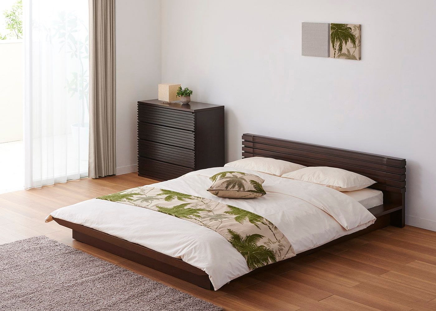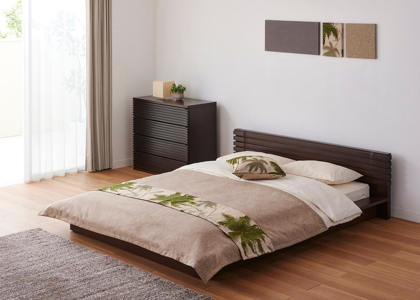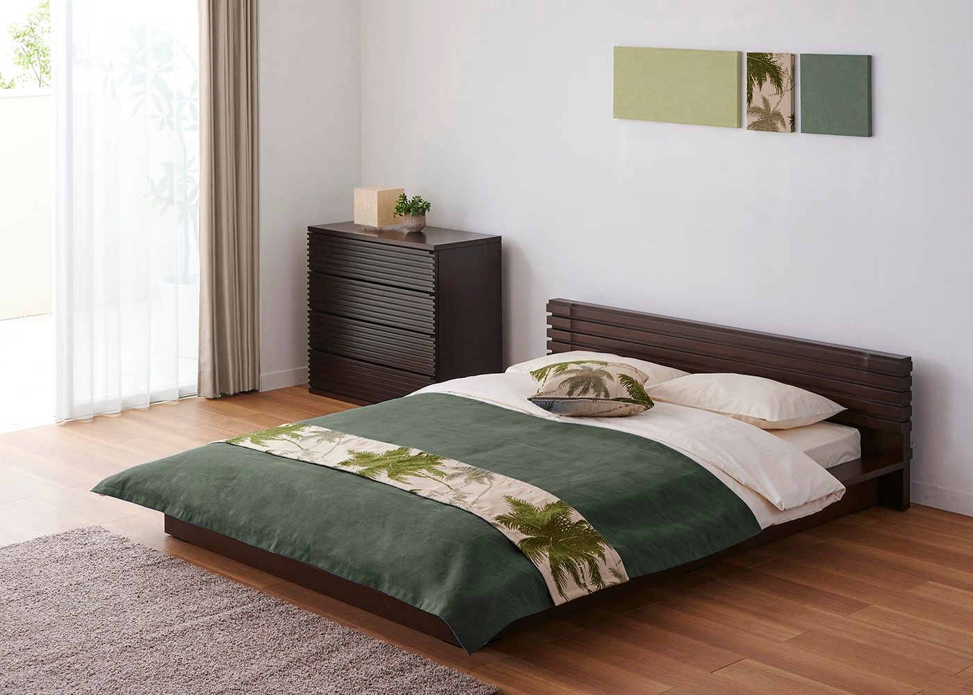 ここからは、ベッドスロー (パーム)に多彩な寝室インテリアをプラスした組み合わせ例をご紹介。理想の寝室づくりの参考にしてください。(写真はベッドスプレッド 奥行1300
