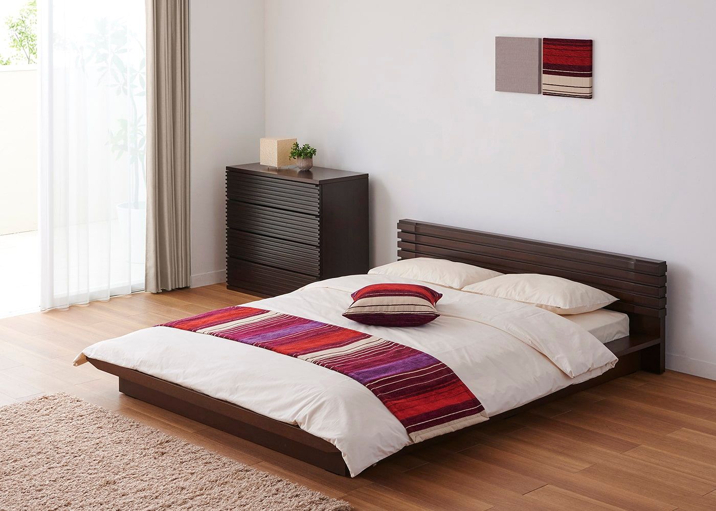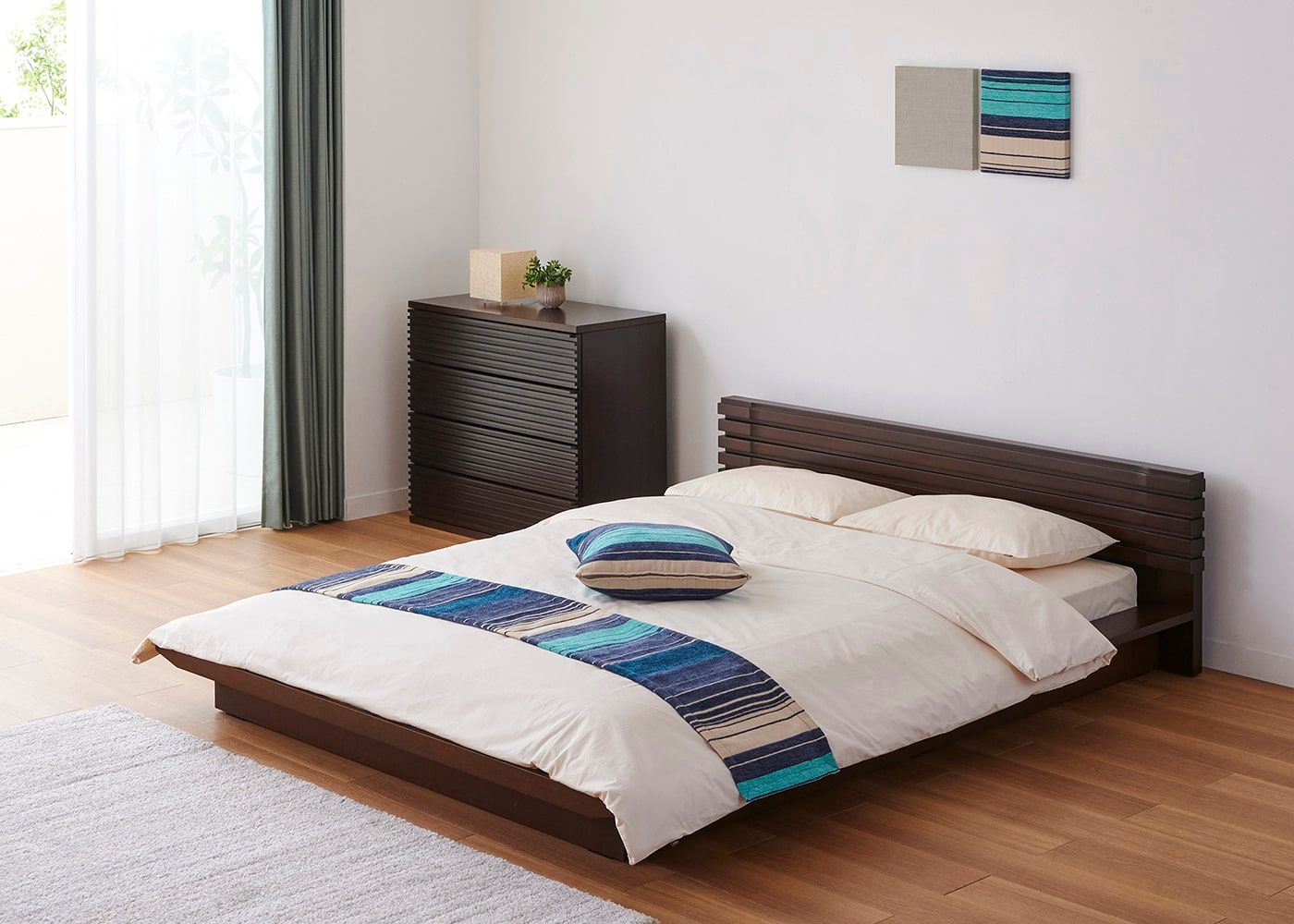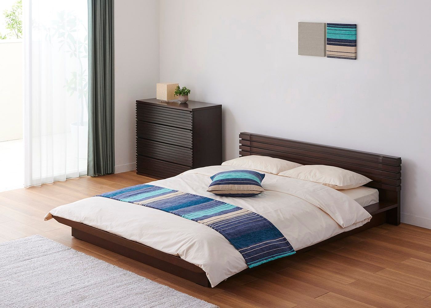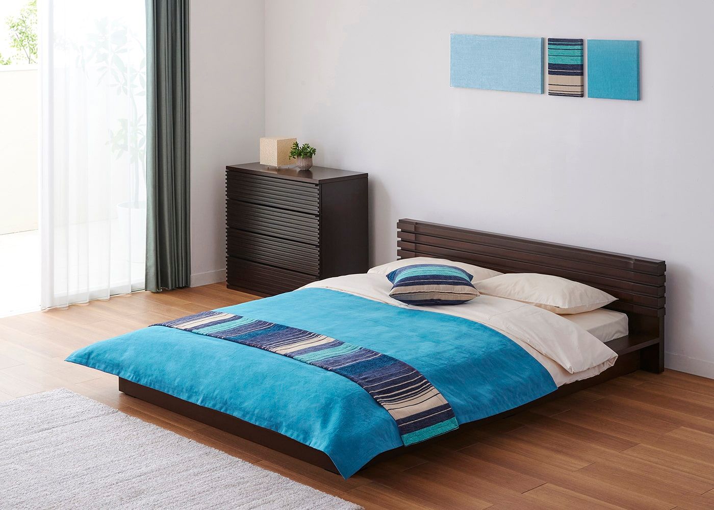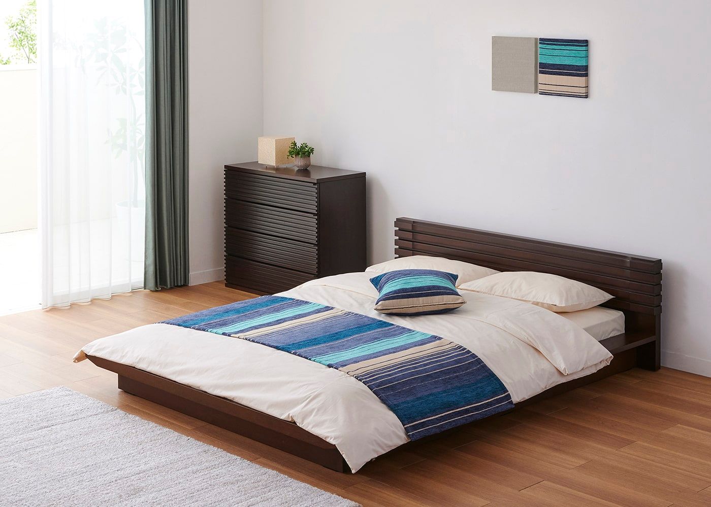 ここからは、ベッドスロー (アイランド)に多彩な寝室インテリアをプラスした組み合わせ例をご紹介。理想の寝室づくりの参考にしてください。(写真はベッドスプレッド 奥行1300