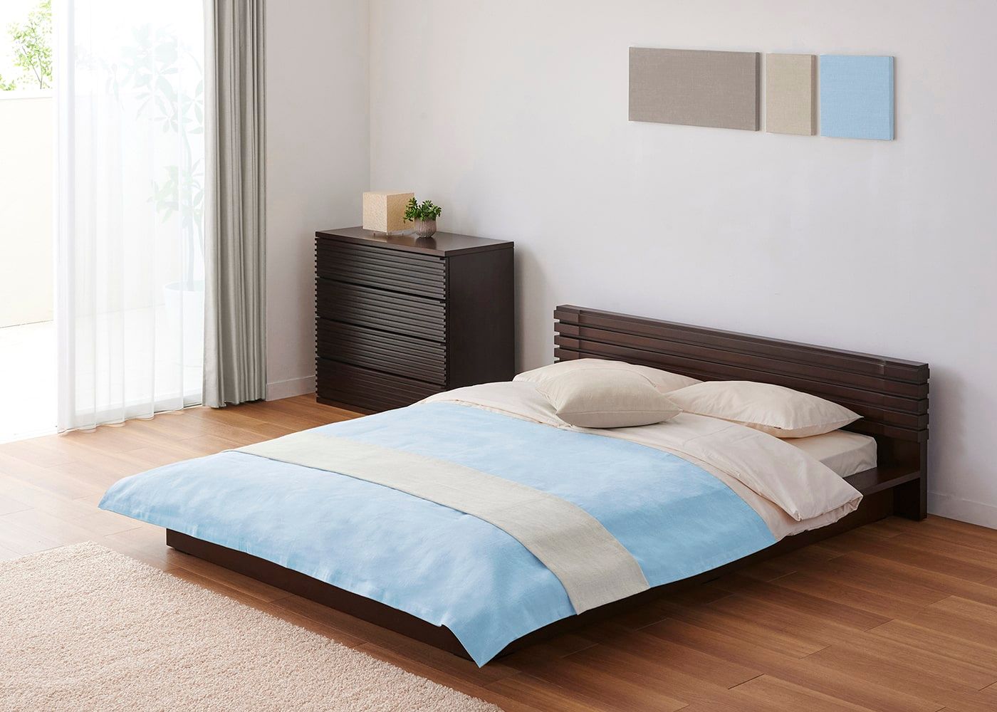 CL ブルー(ベッドスプレッド)+PU ブラウン(ベッドスロー)