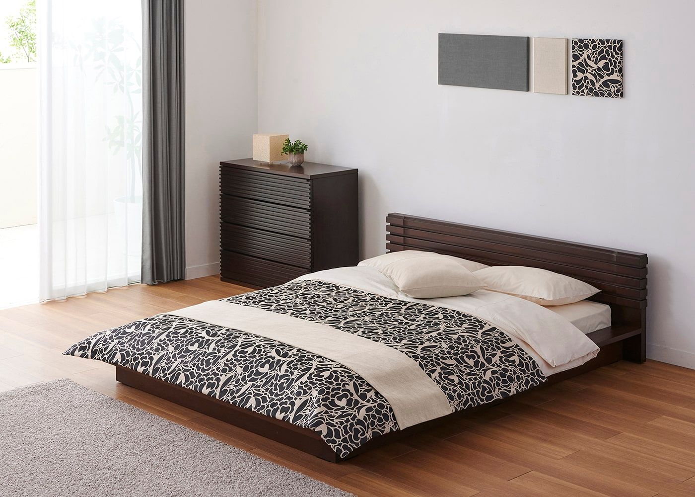 KS ブラック(ベッドスプレッド)+CL アイボリー(ベッドスロー)