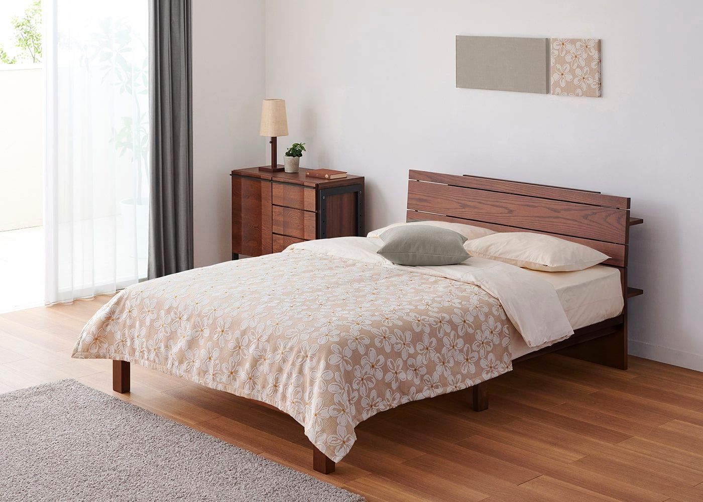 ホテルライクな寝室作り 寝室をホテルライクなリゾートコーディネートで整えることで、非日常感のある快適なスペースに変えることができるでしょう。 詳細ページへ ベッドフレーム 「ホテルライク」「開放感」 「癒し」 「収納力」をコンセプトにした4タイプのベッドからお気に入りを見つけてください。 詳細ページへ レイアウト・家具配置 身体を休める、書斎と兼用したい、収納力を充実させたいなど、ライフスタイルと合うレイアウトや家具選びを考えてみてください。 詳細ページへ 快眠マットレス 「コイルタイプ」、「スプリングタイプ」など様々な種類のマットレスをご用意しています。あなたに合った寝心地で選びましょう。 詳細ページへ 布団・毛布・枕・カバー 寝具は季節に応じて選び、組み合わせて使うことが重要です。「布団」「毛布」「ベッドパッド」 などの特長を解説します。 詳細ページへ 寝室のインテリア ベッドや寝具以外のインテリアにもこだわってみませんか?おしゃれな寝室を叶えるたくさんのインテリアをご覧ください。 詳細ページへ 寝室の模様替え 寝室は家具以外の部分を変えるだけでも、簡単に模様替えできます。気軽にベッドファブリックや他の装飾で模様替えしてみては? 詳細ページへ ベッドサイズ・一覧表 ベッドサイズは使用人数や体格、部屋の広さから検討していきます。ライフスタイルに合わせたベッドサイズを選びが大切です。 詳細ページへ