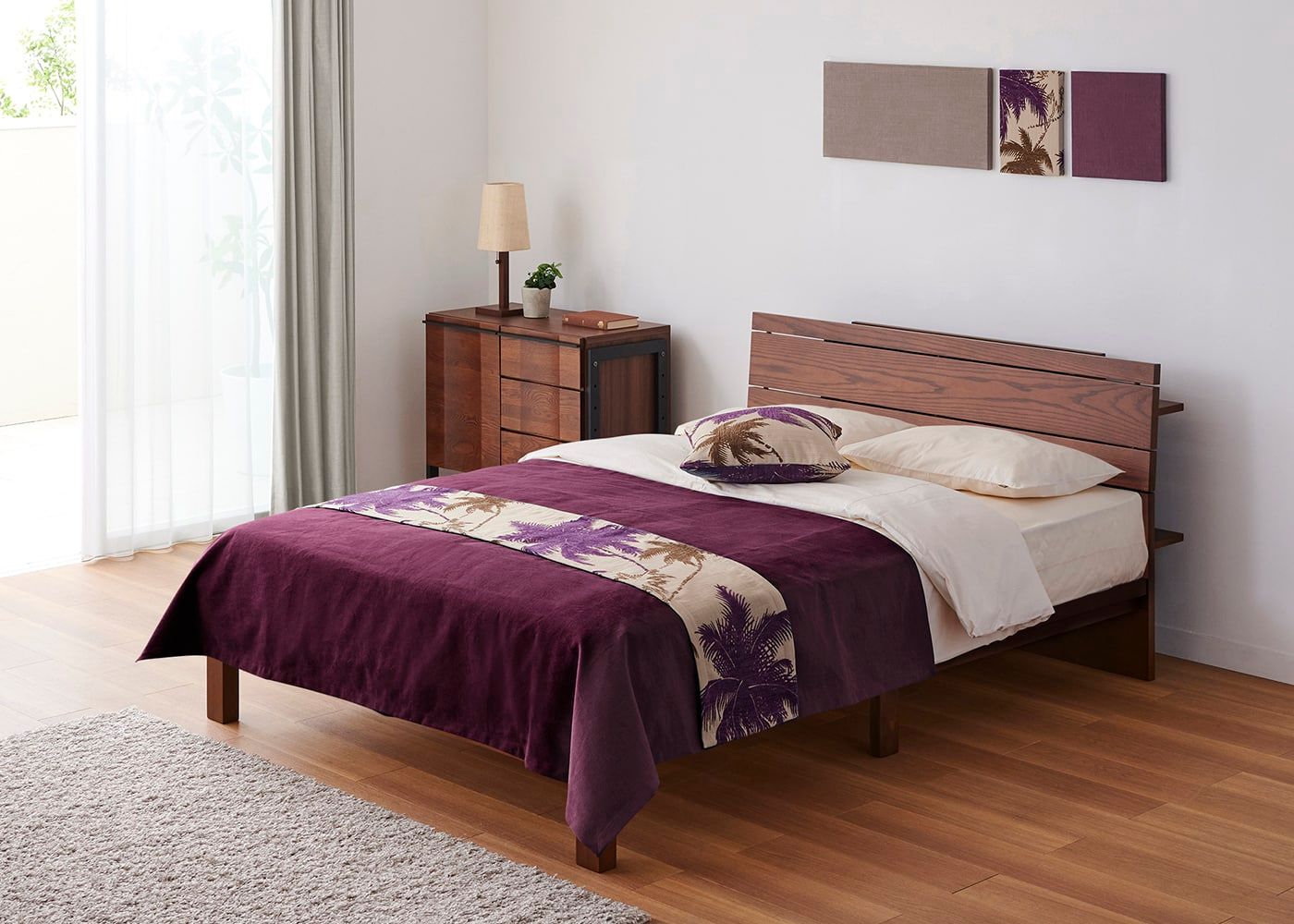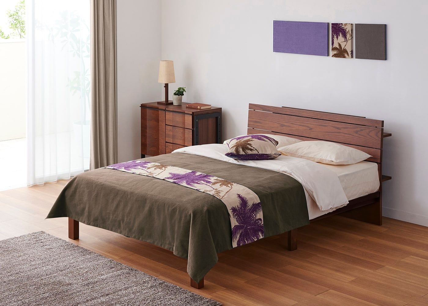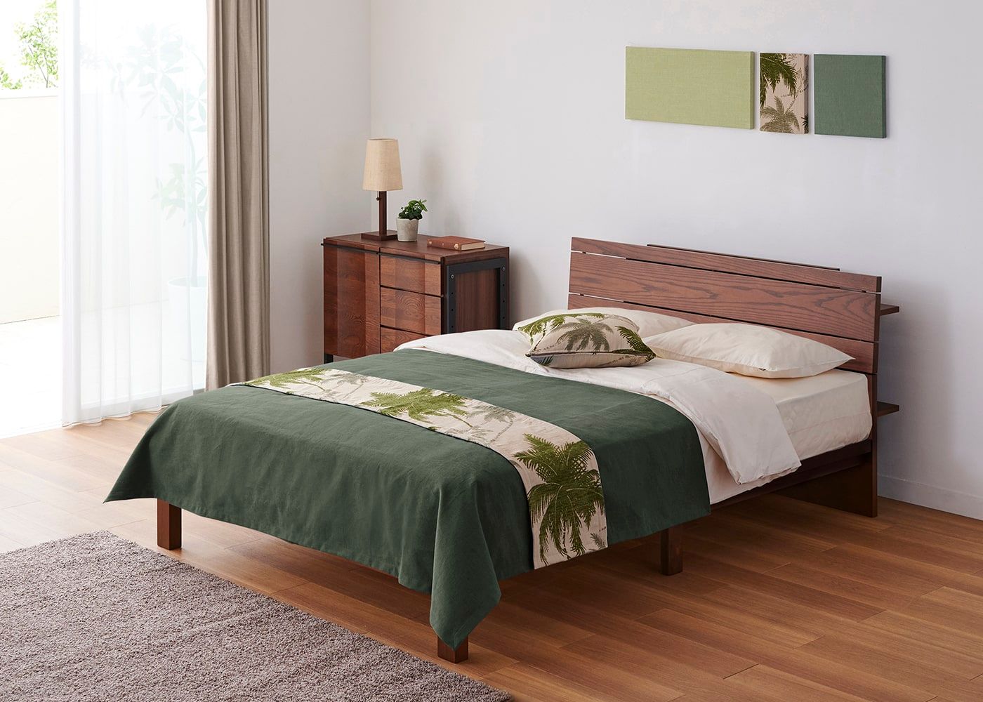 ここからは、ベッドスロー (パーム)に多彩な寝室インテリアをプラスした組み合わせ例をご紹介。理想の寝室づくりの参考にしてください。(写真はベッドスプレッド 奥行1300