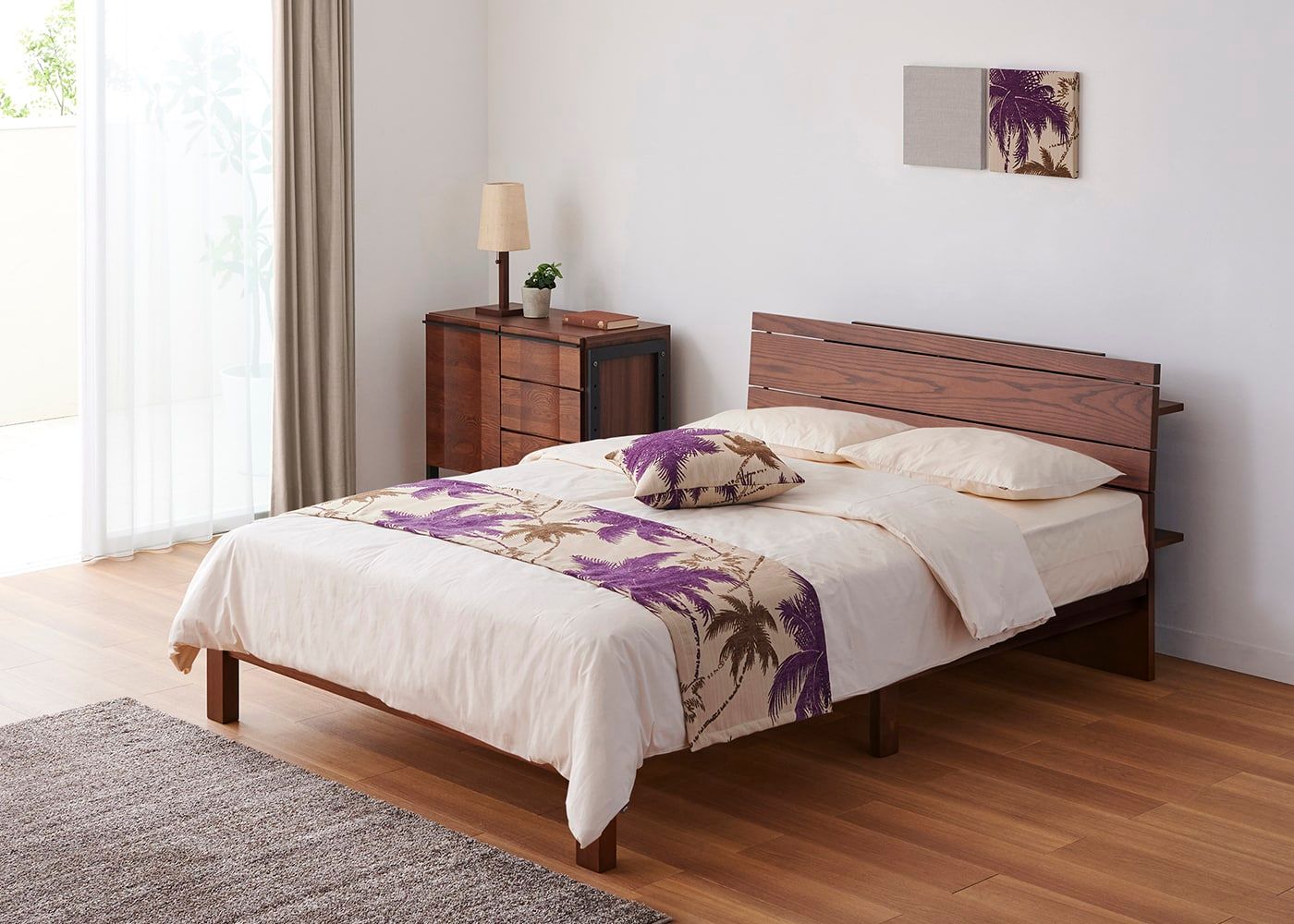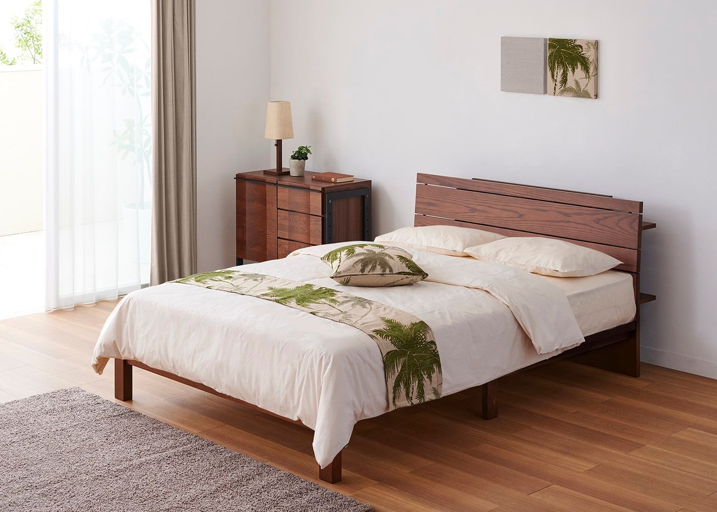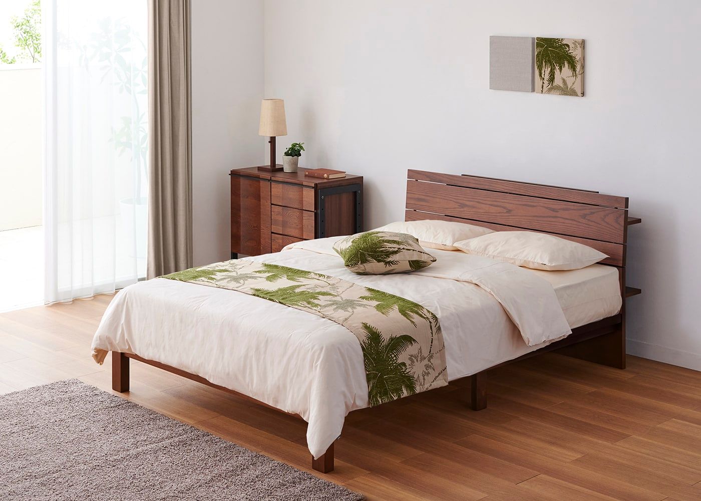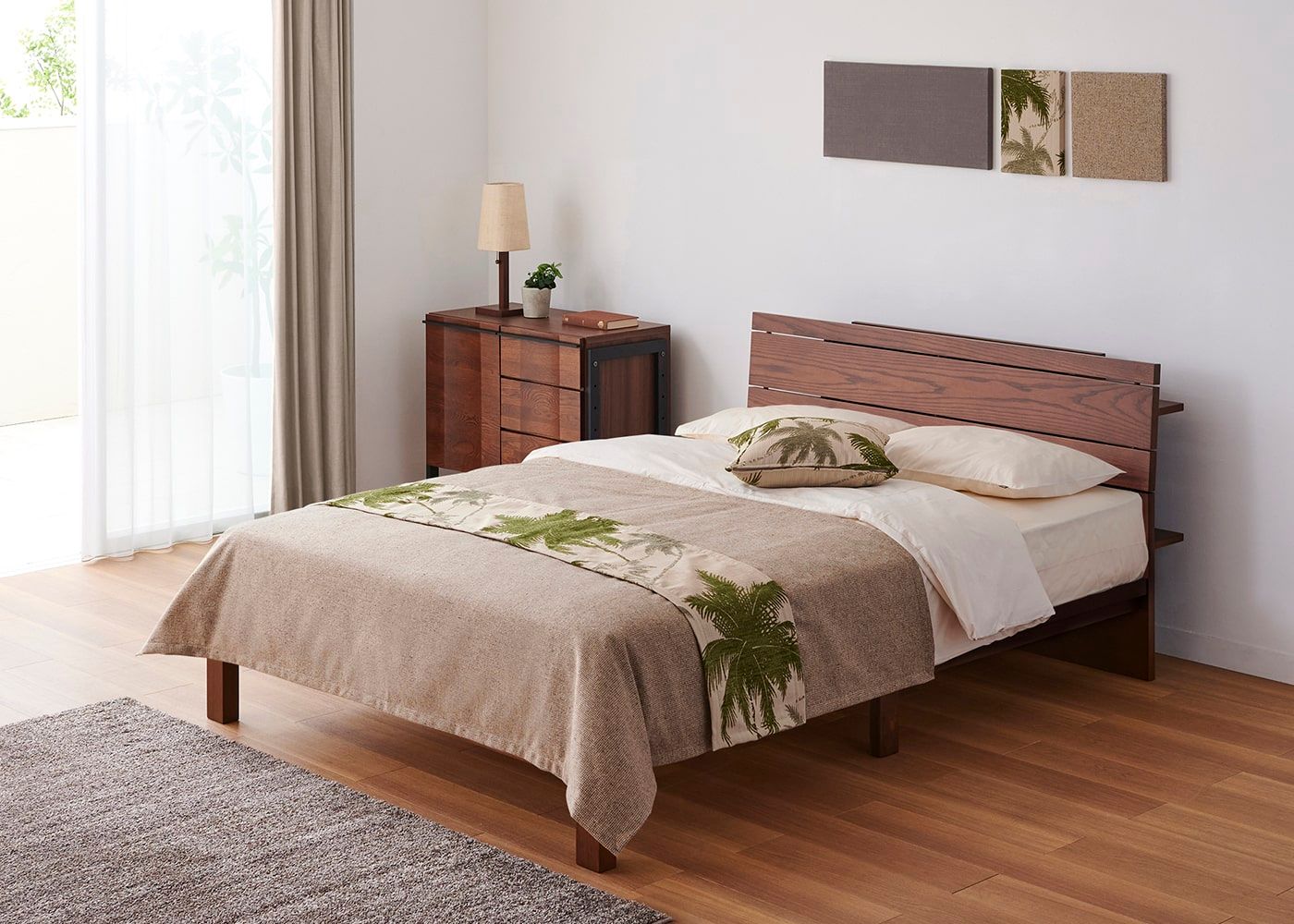 ここからは、ベッドスロー (パーム)に多彩な寝室インテリアをプラスした組み合わせ例をご紹介。理想の寝室づくりの参考にしてください。(写真はベッドスプレッド 奥行1300