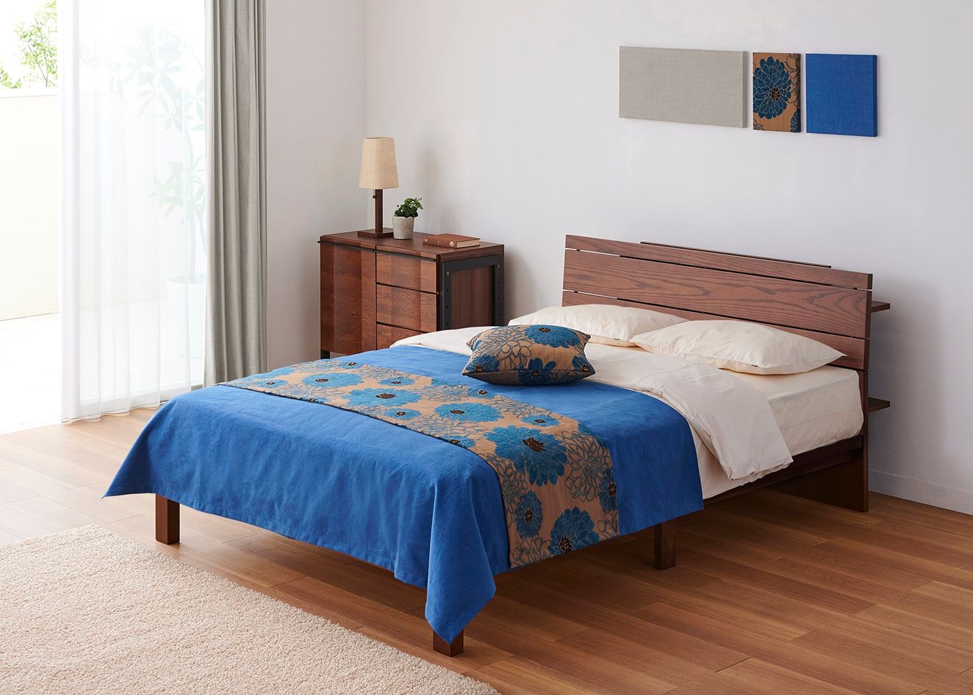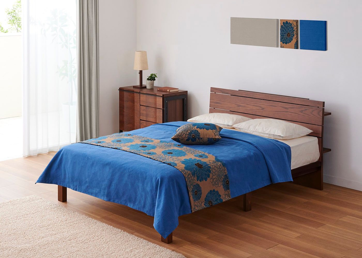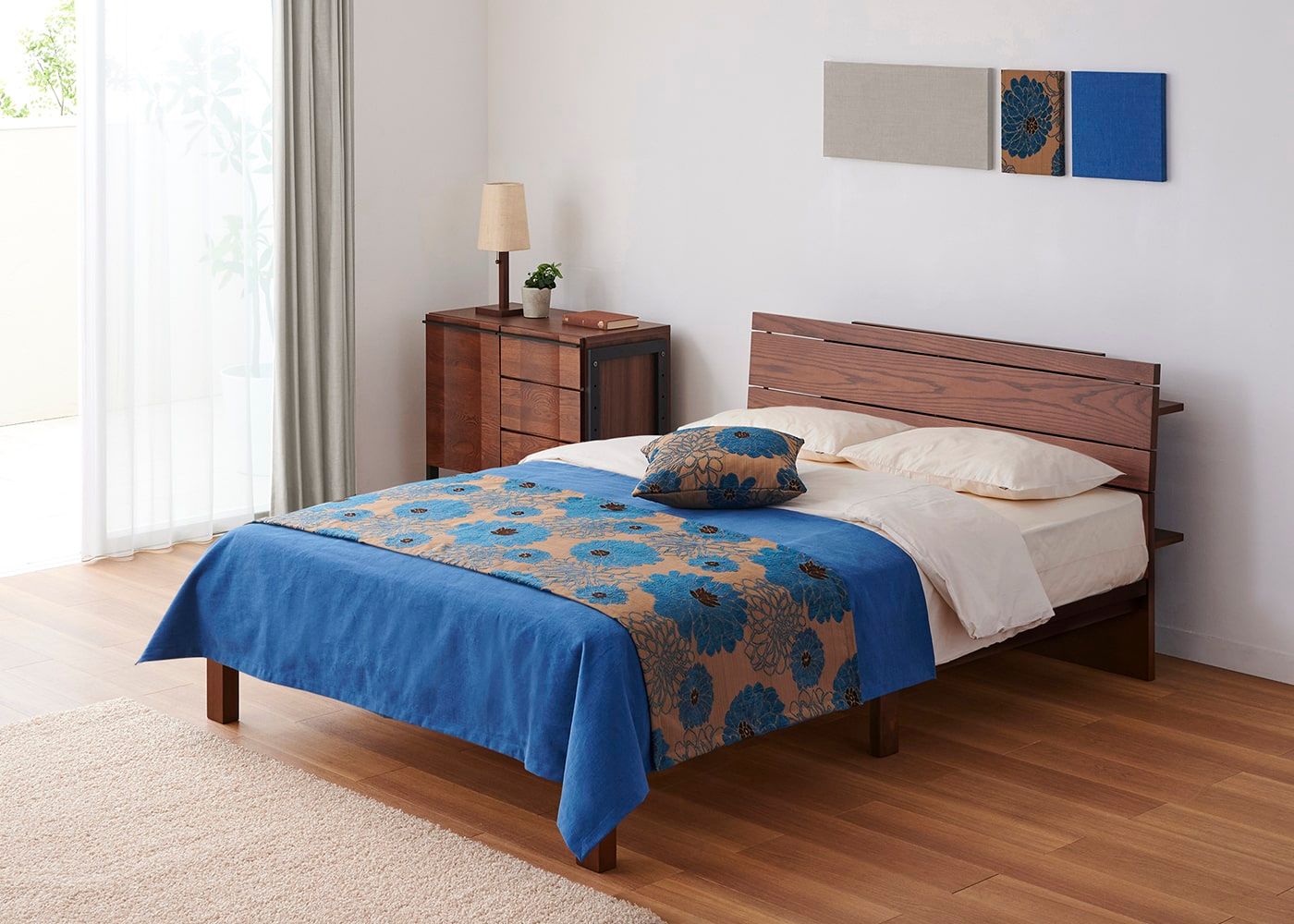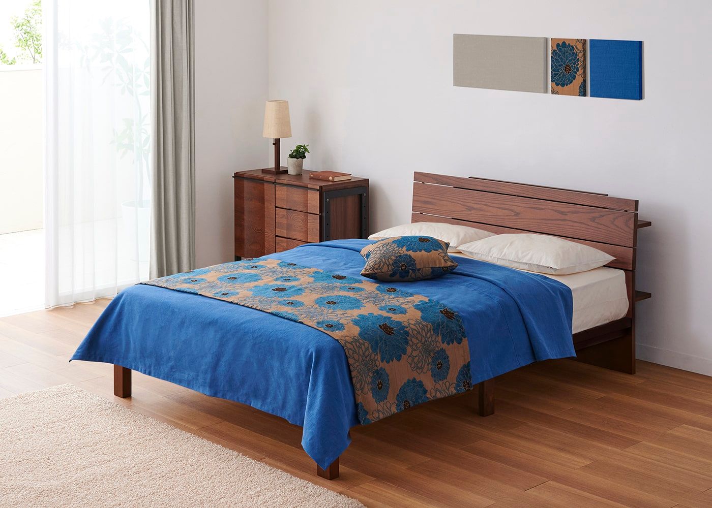 CL ブルー(ベッドスプレッド)+PU ブラウン(ベッドスロー)