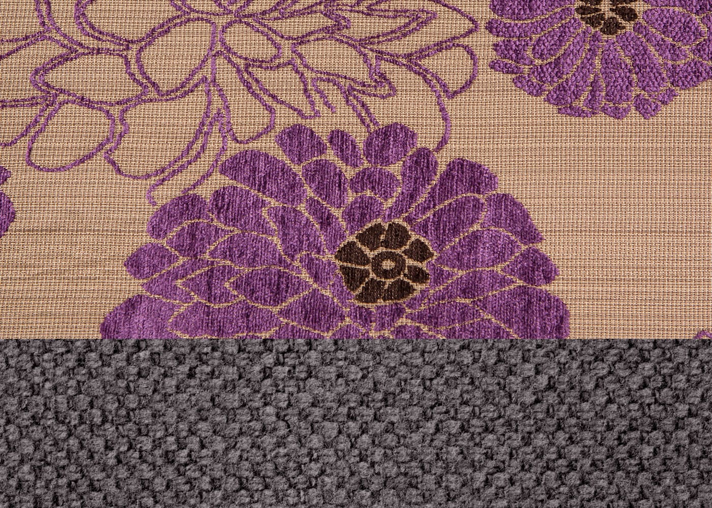 HBパープルのセット例。ベッドスローが細身のためさりげないアクセントがプラスできます。同じ生地の壁面装飾を取り入れたり、相性のよいラグ・カーテンを合わせて自分だけの寝室を作り上げてみましょう。