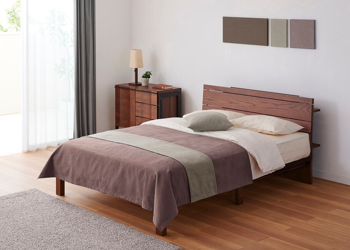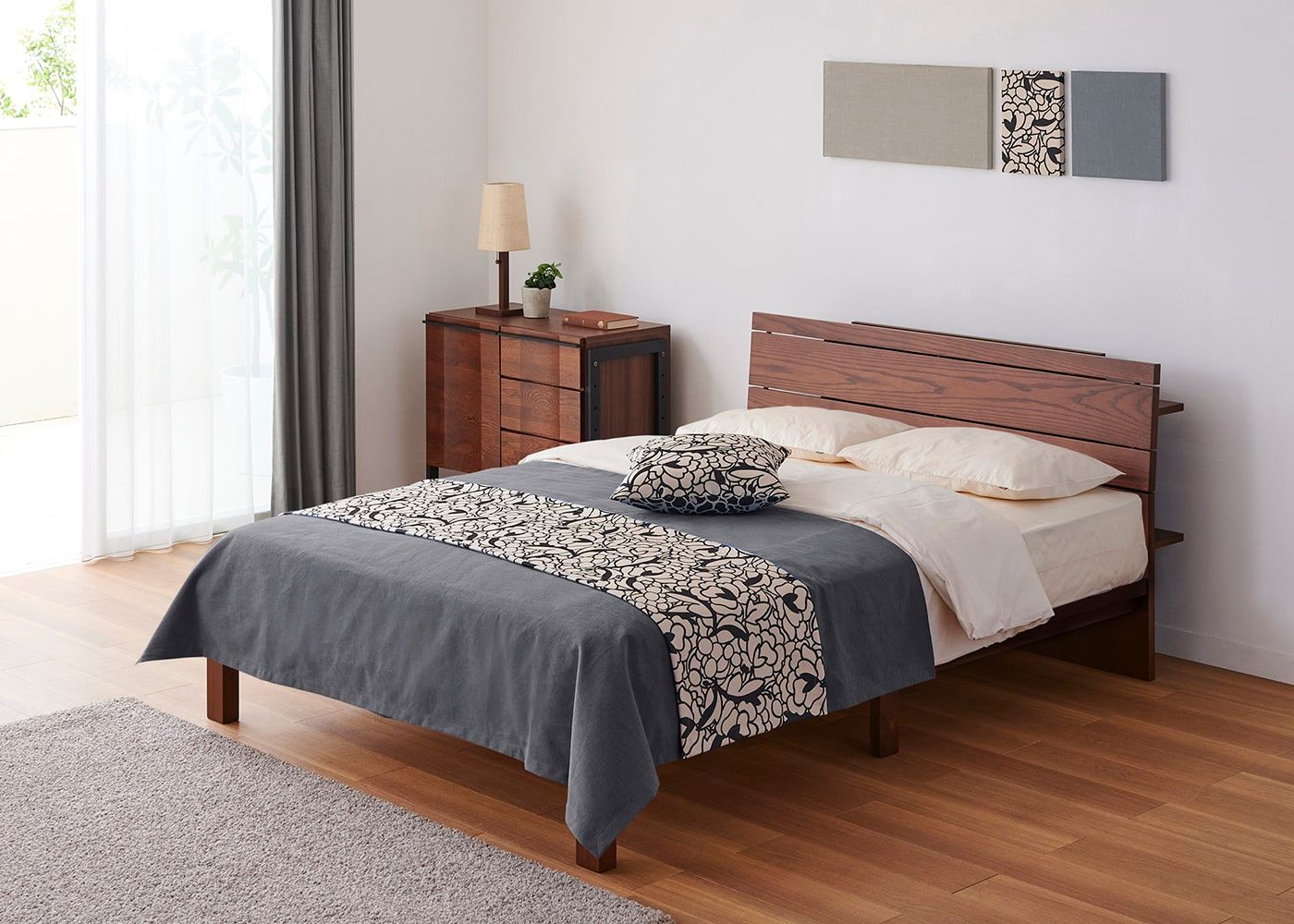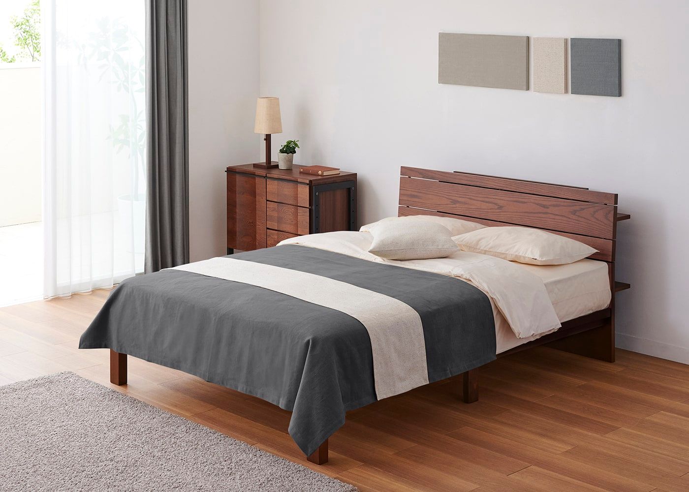 KS ベージュ(ベッドスプレッド)+CL スモーク(ベッドスロー)[注]撮影環境・PC画面によって素材の色を表現できない場合があることをご了承ください。