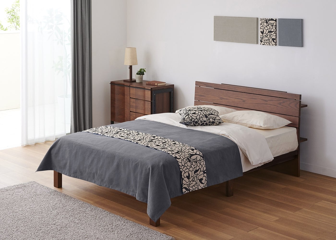 CL スモーク(ベッドスプレッド)+KS ベージュ(ベッドスロー)