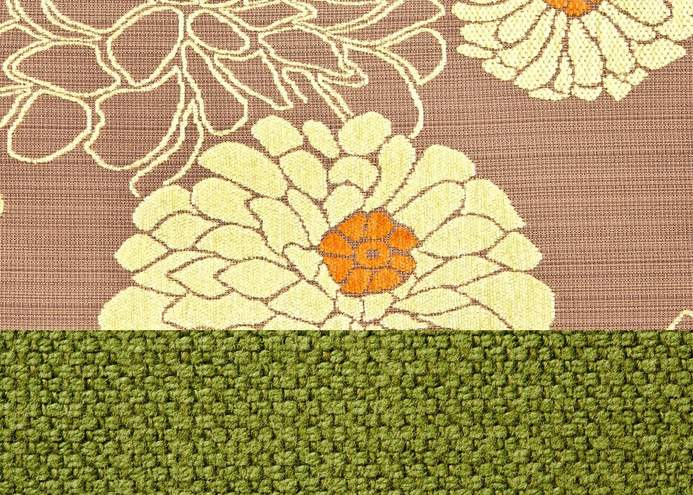 写真はベッドスプレッド 奥行1300 CLハーブと、ベッドスロー 奥行300 PLダークブラウンのセット例。