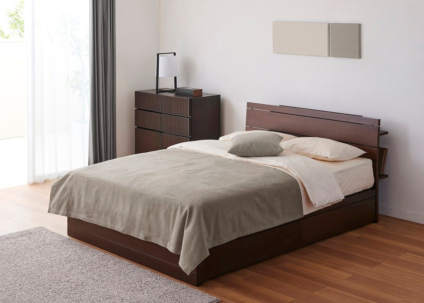 ホテルライクな寝室作り 寝室をホテルライクなリゾートコーディネートで整えることで、非日常感のある快適なスペースに変えることができるでしょう。 詳細ページへ ベッドフレーム 「ホテルライク」「開放感」 「癒し」 「収納力」をコンセプトにした4タイプのベッドからお気に入りを見つけてください。 詳細ページへ レイアウト・家具配置 身体を休める、書斎と兼用したい、収納力を充実させたいなど、ライフスタイルと合うレイアウトや家具選びを考えてみてください。 詳細ページへ 快眠マットレス 「コイルタイプ」、「スプリングタイプ」など様々な種類のマットレスをご用意しています。あなたに合った寝心地で選びましょう。 詳細ページへ 布団・毛布・枕・カバー 寝具は季節に応じて選び、組み合わせて使うことが重要です。「布団」「毛布」「ベッドパッド」 などの特長を解説します。 詳細ページへ 寝室のインテリア ベッドや寝具以外のインテリアにもこだわってみませんか?おしゃれな寝室を叶えるたくさんのインテリアをご覧ください。 詳細ページへ 寝室の模様替え 寝室は家具以外の部分を変えるだけでも、簡単に模様替えできます。気軽にベッドファブリックや他の装飾で模様替えしてみては? 詳細ページへ ベッドサイズ・一覧表 ベッドサイズは使用人数や体格、部屋の広さから検討していきます。ライフスタイルに合わせたベッドサイズを選びが大切です。 詳細ページへ