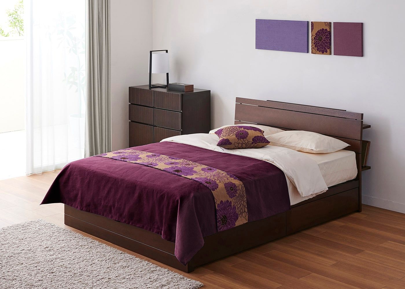 写真はベッドスプレッド 奥行1300 ORパープルと、ベッドスロー 奥行300 PUパープルのセット例。