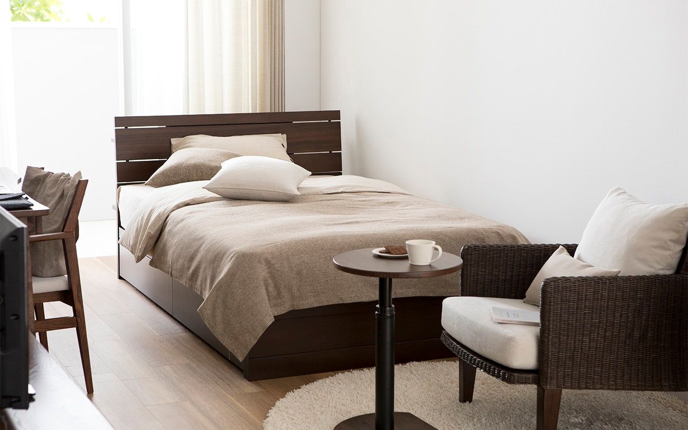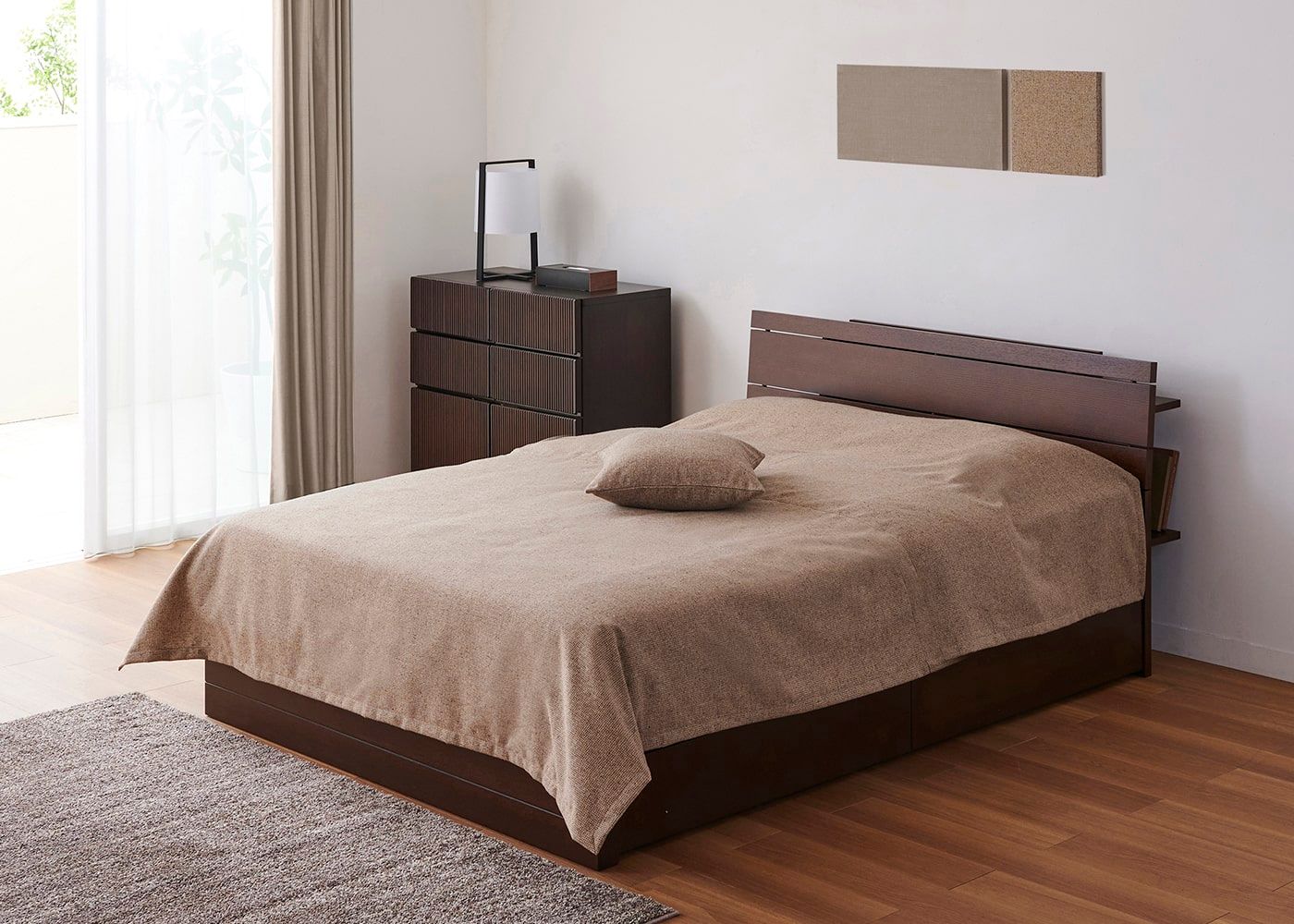 寝室のコーディネートや模様替えをこだわりたい時は、足元にベッドスロー(別売り)も添えてみては?