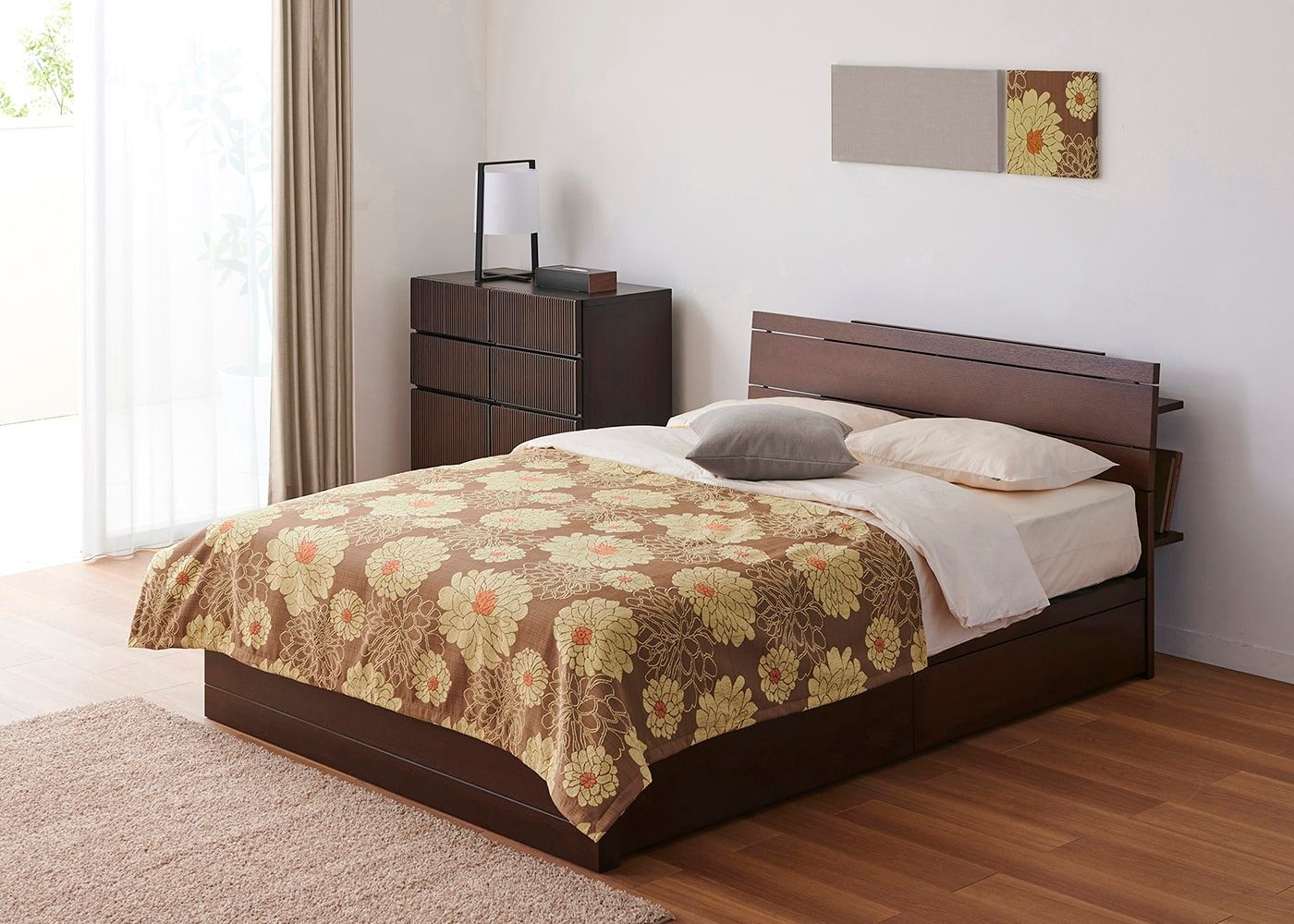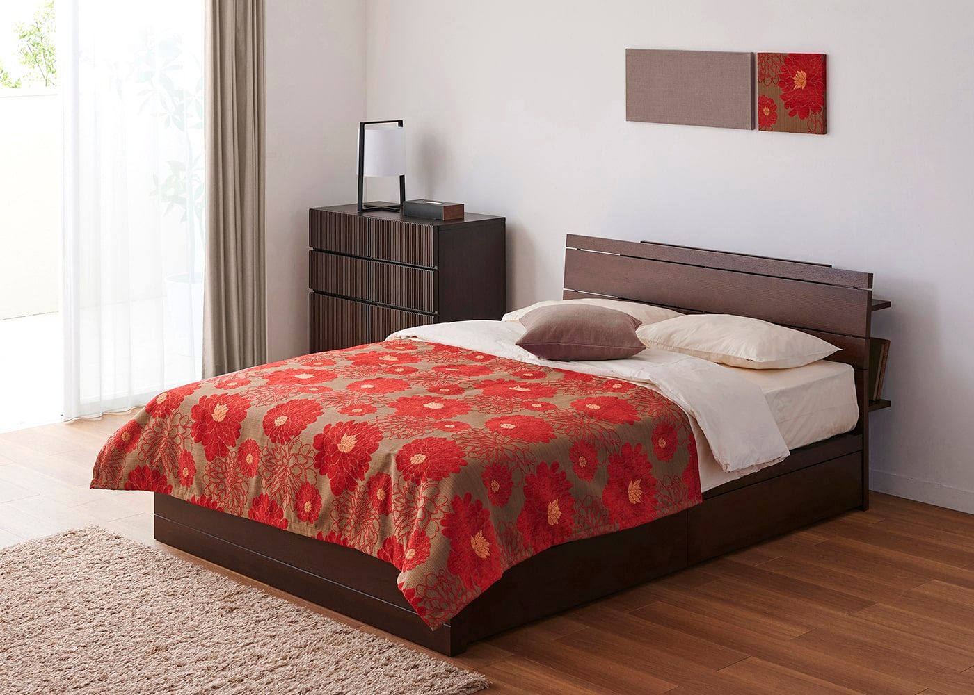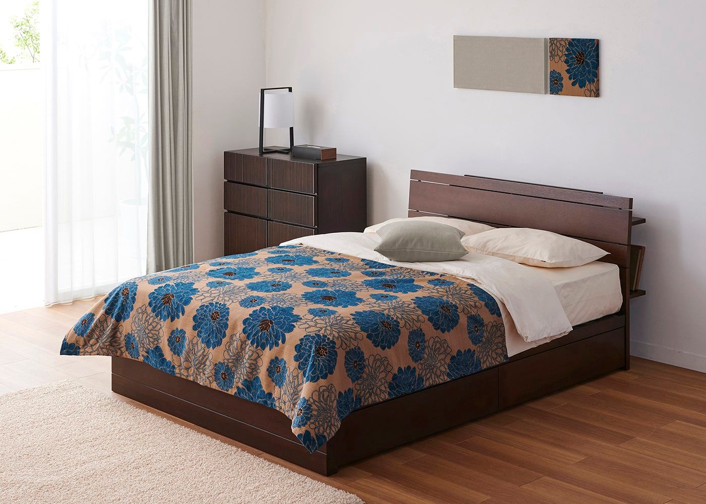 寝室のコーディネートや模様替えをこだわりたい時は、足元にベッドスロー(別売り)も添えてみては?