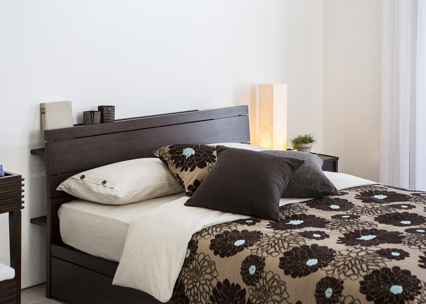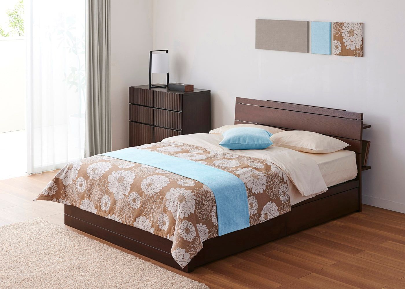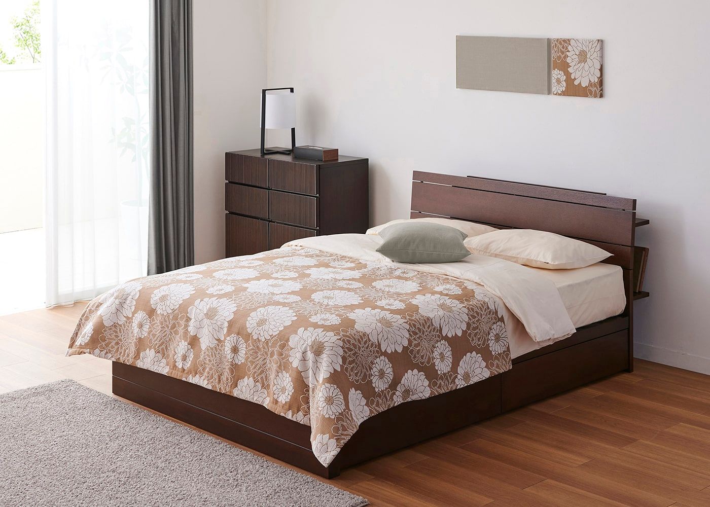 寝室のコーディネートや模様替えをこだわりたい時は、足元にベッドスロー(別売り)も添えてみては?