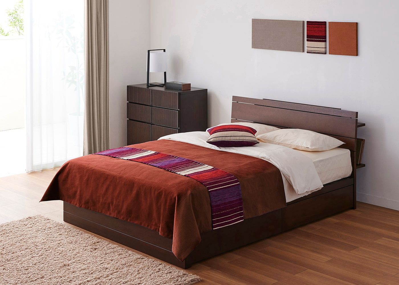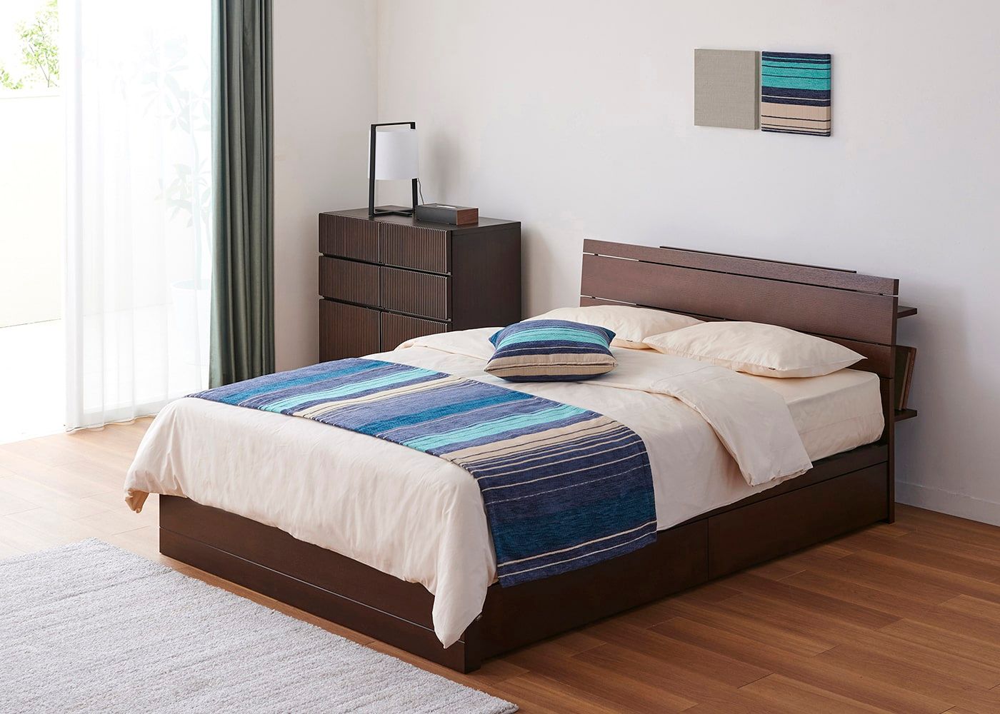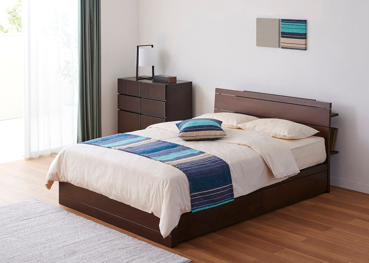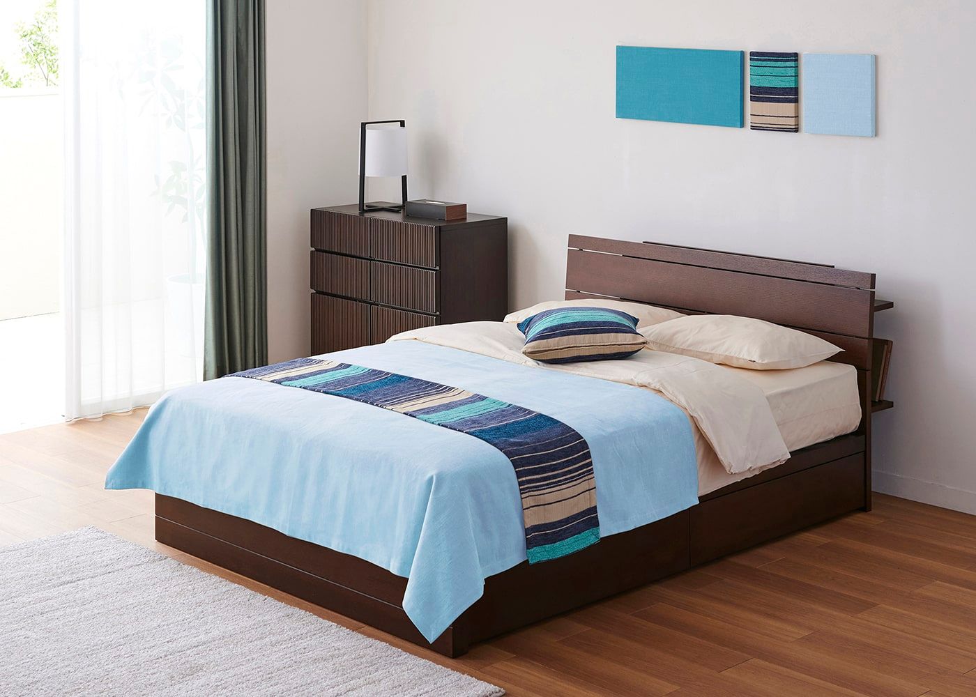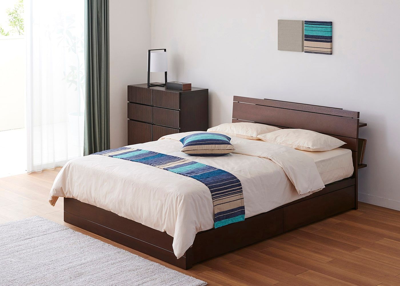 ここからは、ベッドスロー (アイランド)に多彩な寝室インテリアをプラスした組み合わせ例をご紹介。理想の寝室づくりの参考にしてください。(写真はベッドスプレッド 奥行1300