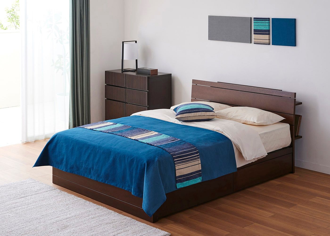 寝室のコーディネートや模様替えをこだわりたい時は、ベッドスプレッド(別売り)と組み合わせてみては? 2枚でコーディネートすることで、おしゃれでホテルライクな部屋づくりが叶います。(写真はベッドスプレッド 奥行1300