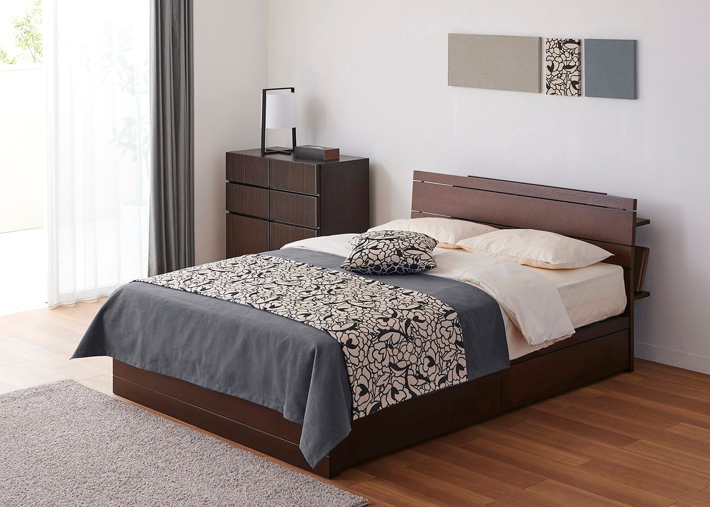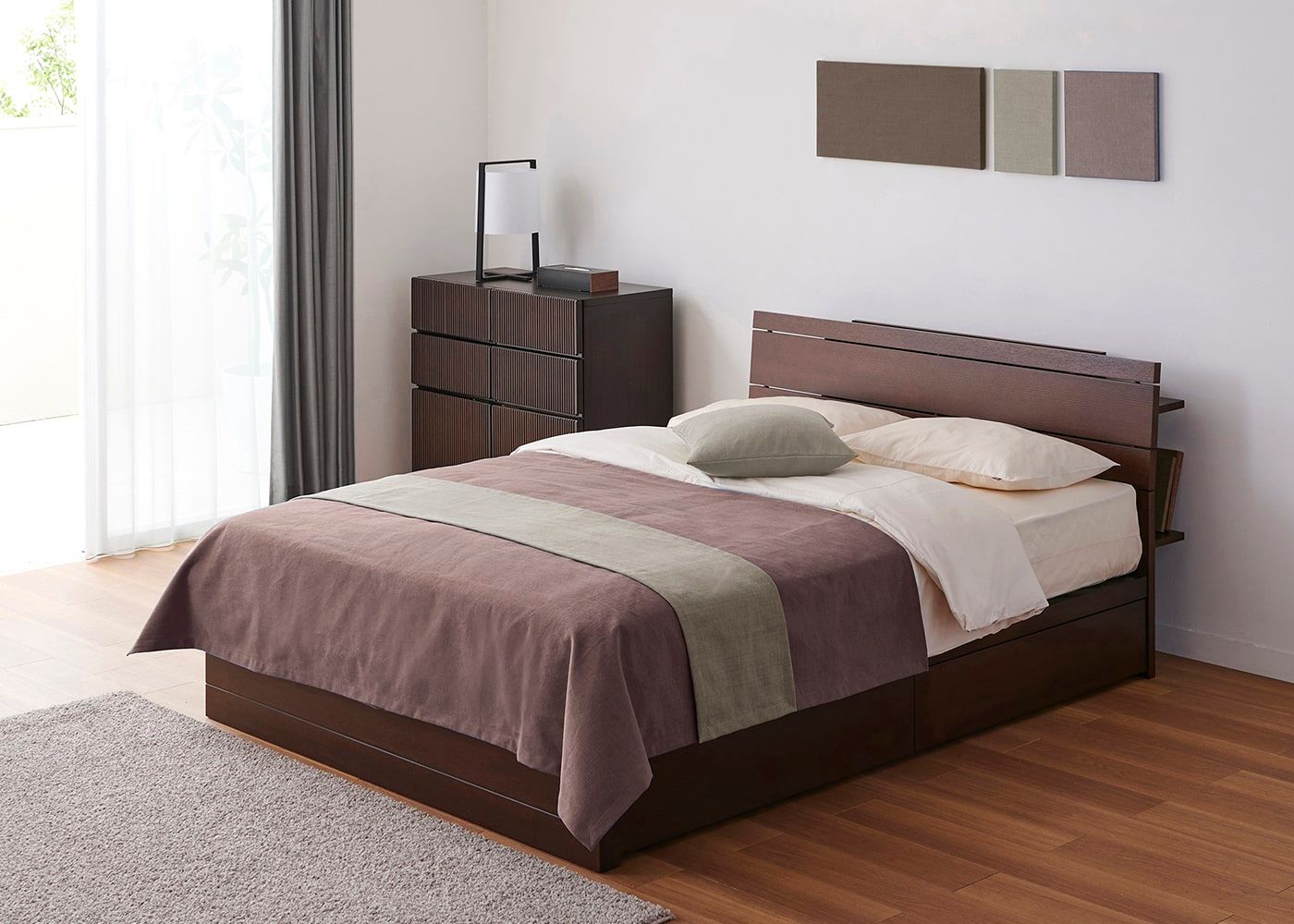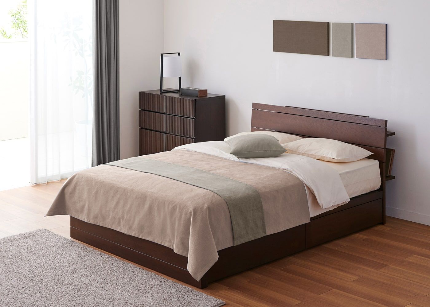KS ベージュ(ベッドスプレッド)+CL スモーク(ベッドスロー)[注]撮影環境・PC画面によって素材の色を表現できない場合があることをご了承ください。