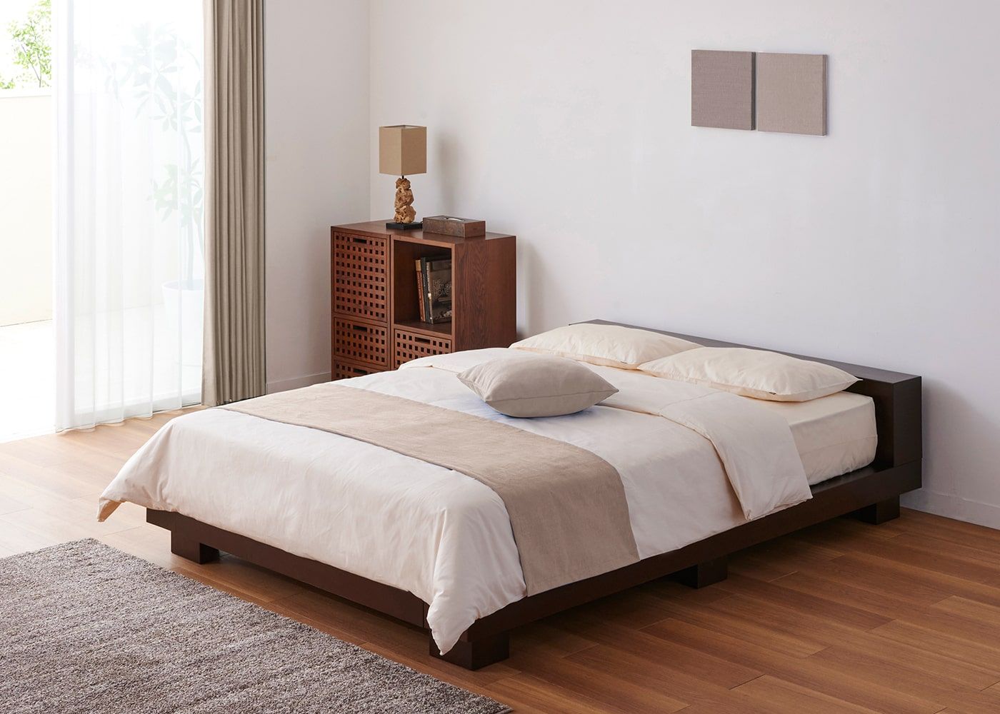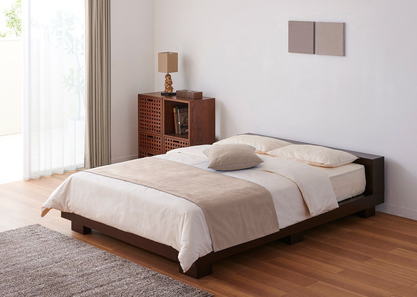 ベッドスローは気軽に寝室を華やかに見せ、ホテルライクな演出も可能です。更に布団の保温性を高めたり、布団の汚れを守る効果も期待できるでしょう。幅はシングル~クィーンの4サイズ、奥行は見せ方に合わせて300、450、650mmの3つから選べます。