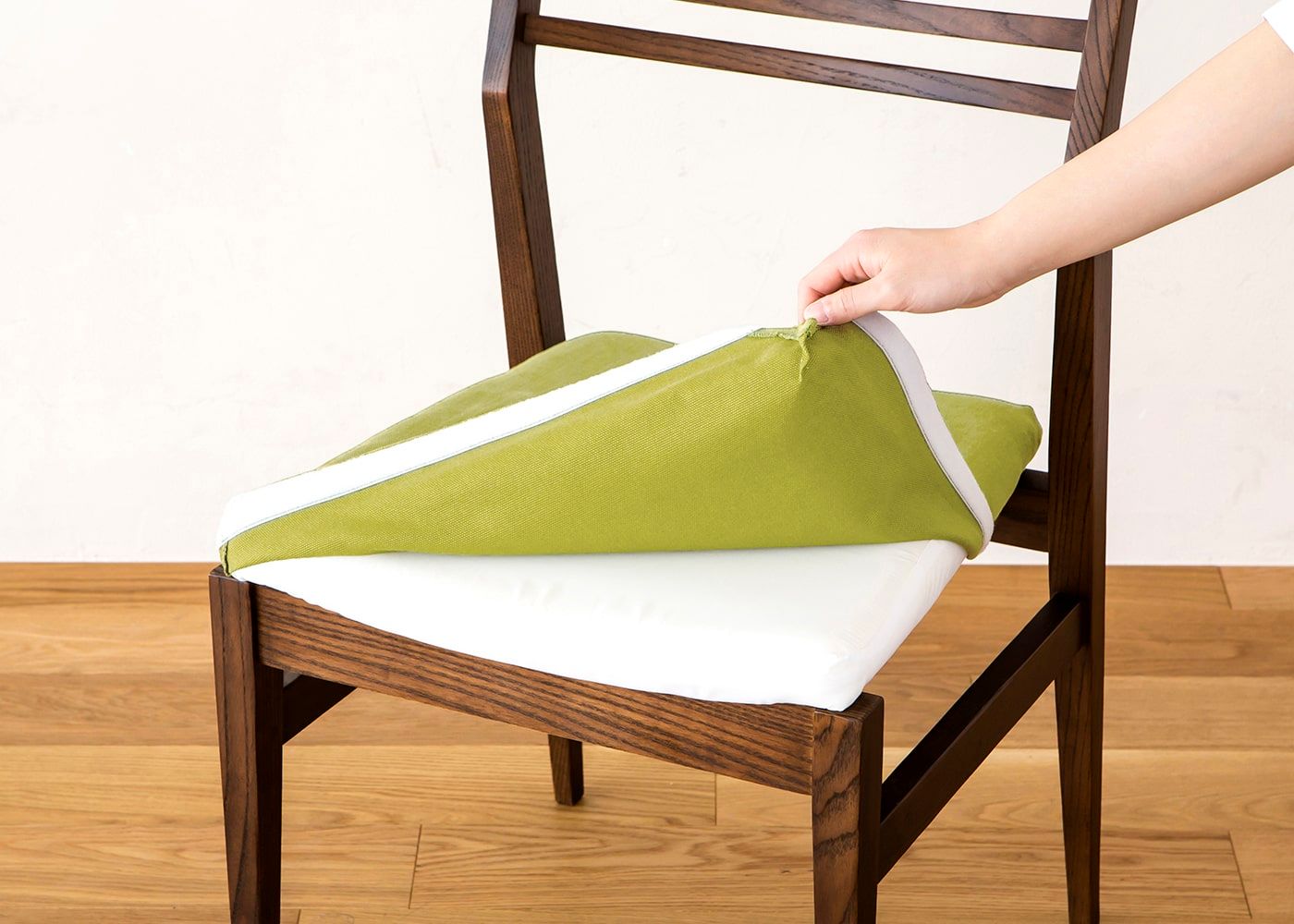 座面にカバーを被せてマジックテープで固定するだけで、簡単にカバー交換ができます。