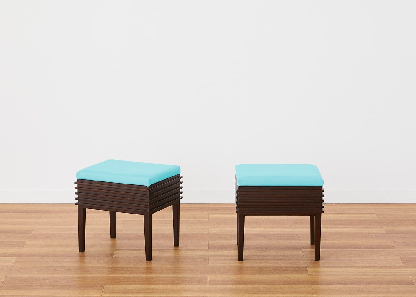 鮮やかで美しい発色と防カビ・防腐・防汚・エクストリーム撥水などの高い機能性を兼ね備えたルーバー・ドレッサースツールカバー (テンポテスト)。屋内はもちろん、屋外でも使えるイタリア製の高機能ファブリックです。(写真はTPミストブルー。スツール1脚分のカバー販売となります)