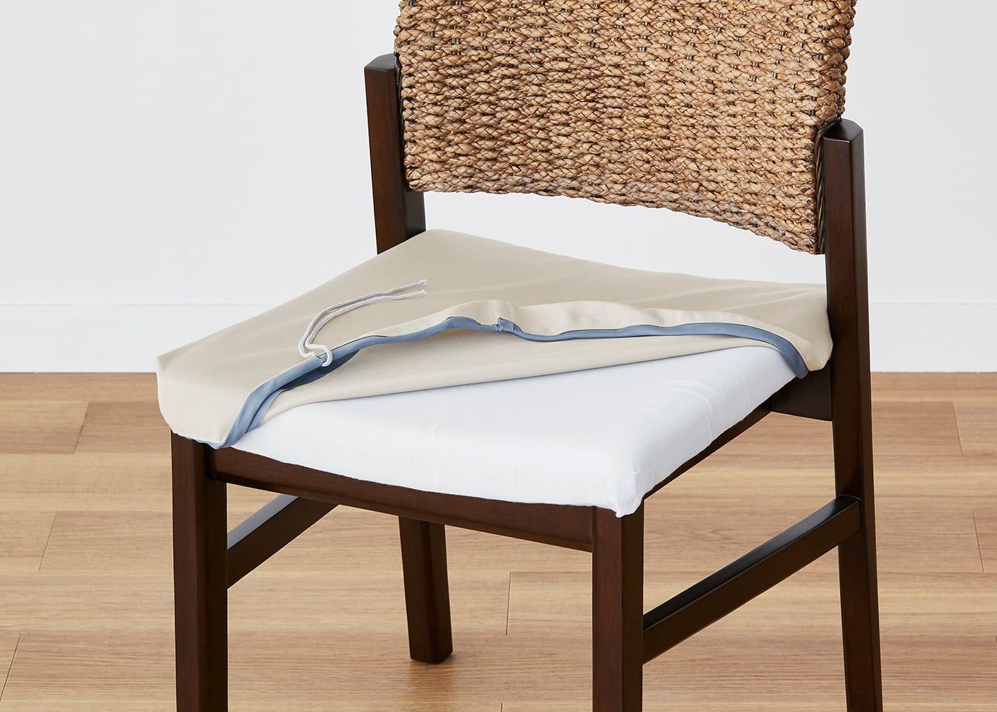 座面にカバーを被せて紐で固定するだけで、簡単にカバー交換ができます。
