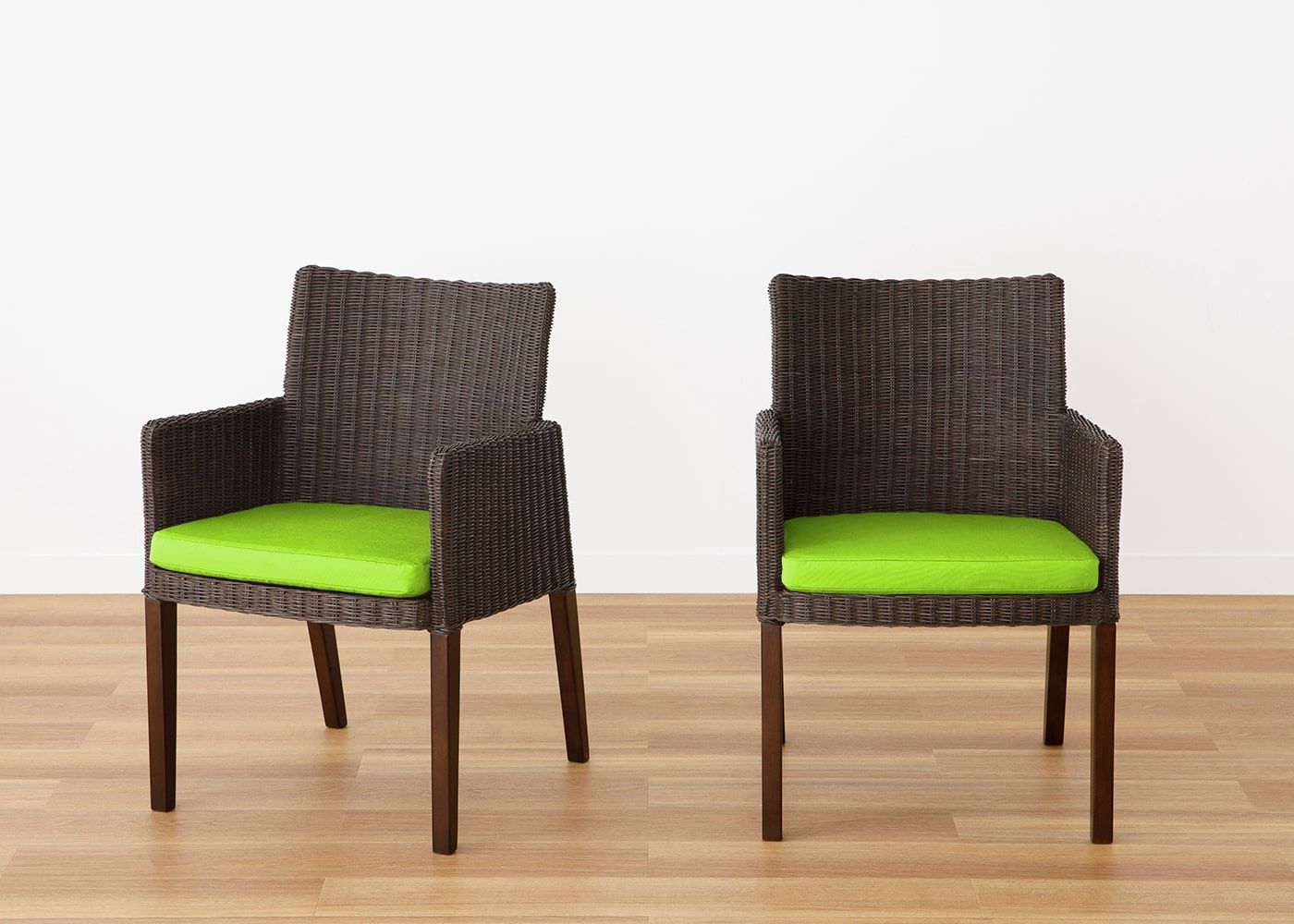 鮮やかで美しい発色と防カビ・防腐・防汚・エクストリーム撥水などの高い機能性を兼ね備えたムン・ダイニングアームチェア (ラタン) カバー (テンポテスト)。屋内はもちろん、屋外でも使えるイタリア製の高機能ファブリックです。(写真はTPライム。椅子1脚分のカバー販売となります)