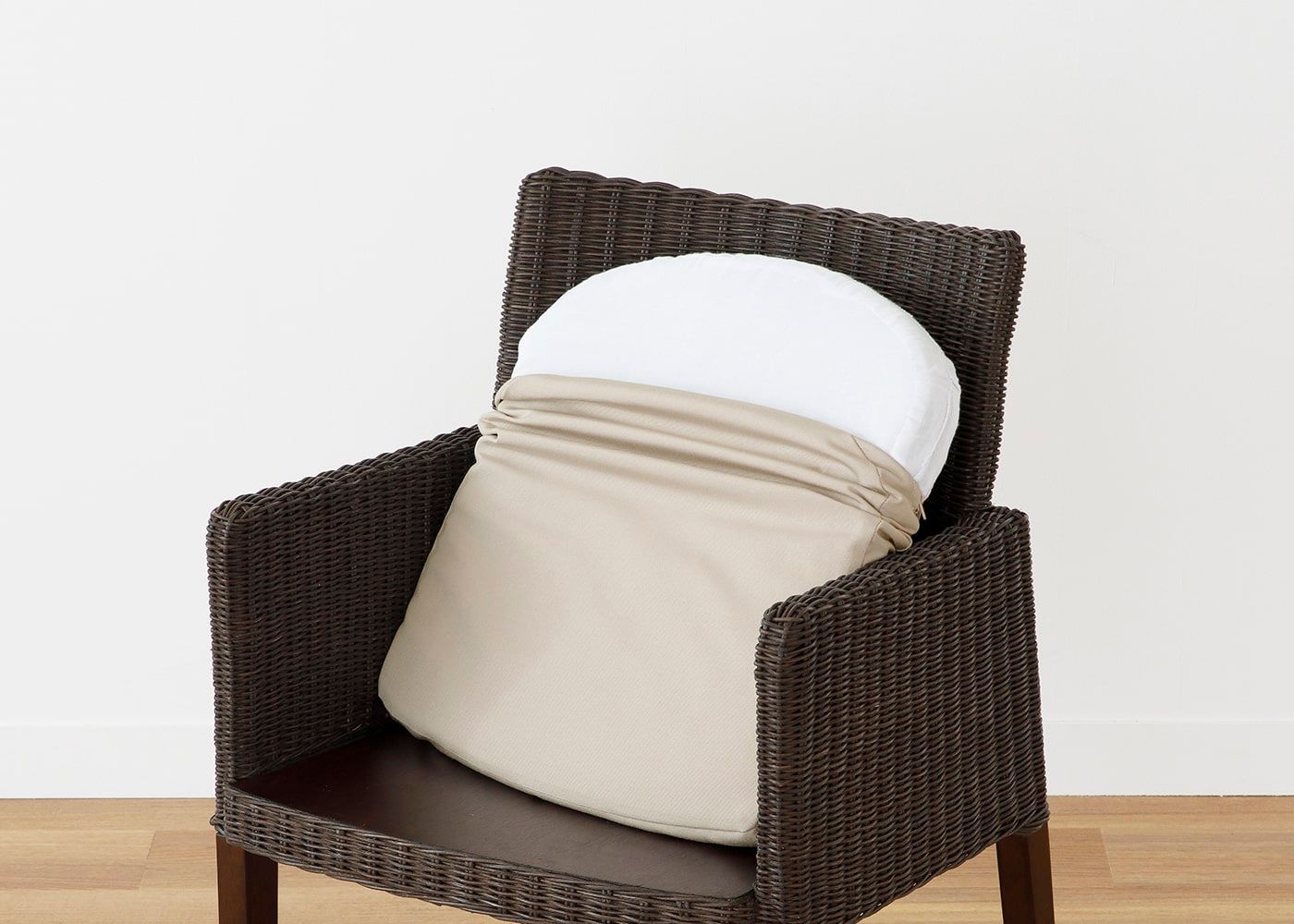 カバー生地のテンポテストは、アクリルを原料から染めた特殊な製法のため色褪せしにくい素材です。防カビ・防腐・防汚・エクストリーム撥水加工を施した、一年中屋外で使用可能なイタリア製の高機能ファブリックになります。万が一、汚れても手洗い可能でいつも清潔に保てて、コットンのような優しい肌触りや風合いを楽しめます。(写真はTPアイボリー)