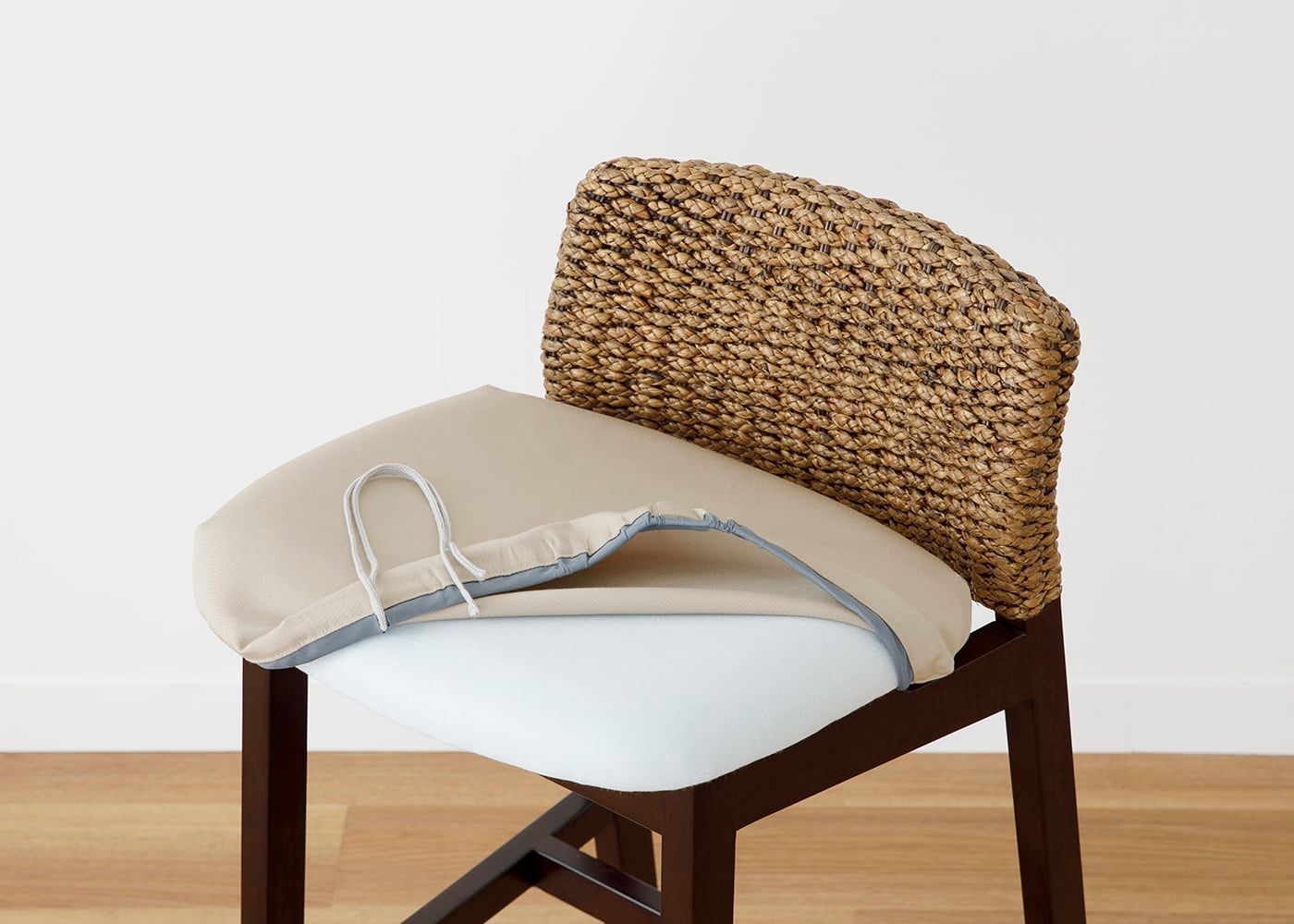 座面にカバーを被せて紐で固定するだけで、簡単にカバー交換ができます。