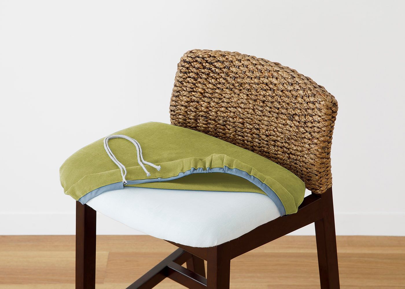座面にカバーを被せて紐で固定するだけで、簡単にカバー交換ができます。