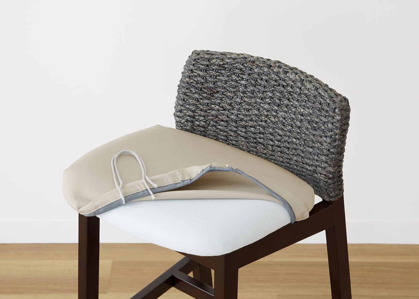 座面にカバーを被せて紐で固定するだけで、簡単にカバー交換ができます。