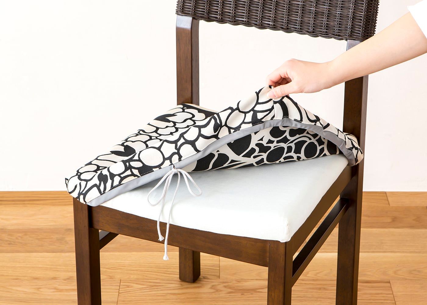 座面にカバーを被せて紐で固定するだけで、簡単にカバー交換ができます。