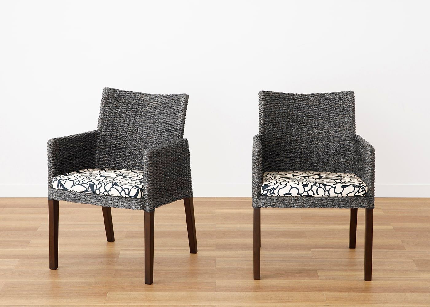 「湖水の華」をコンセプトにしたデザインが魅力のムン・ダイニングアームチェア (ヒヤシンスDG) カバー (コスイ)。コスイは花が広がる情景や生命の息吹をジャガード織りで表現した、滑らかでやさしい肌触りのファブリックです。(写真はKSブラック。椅子1脚分のカバー販売となります)