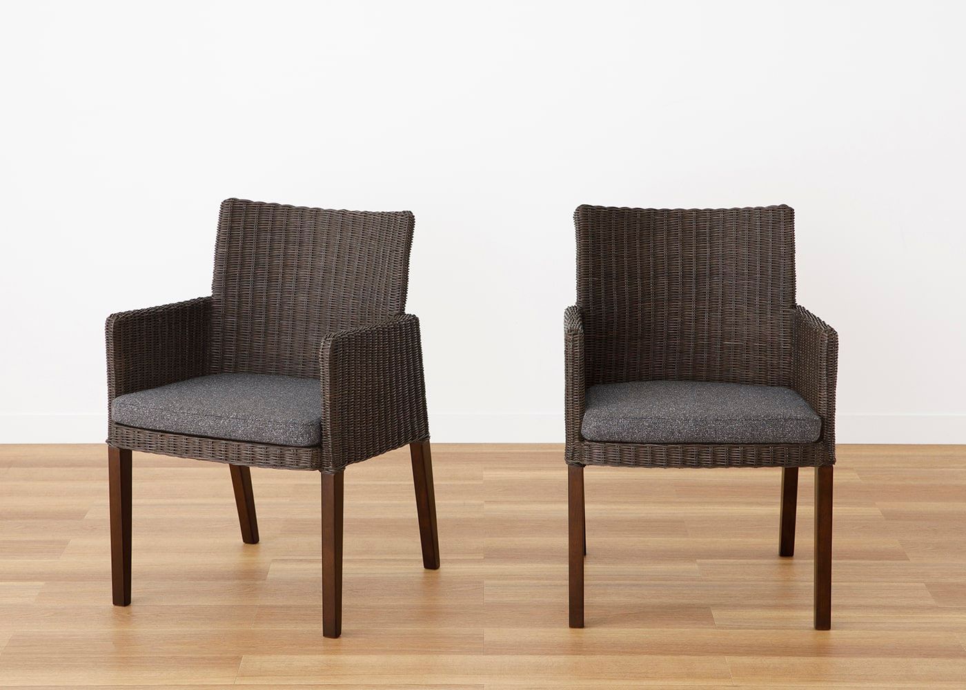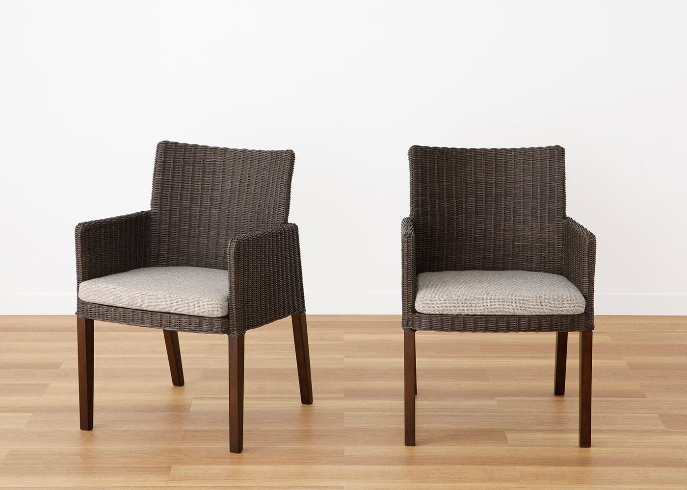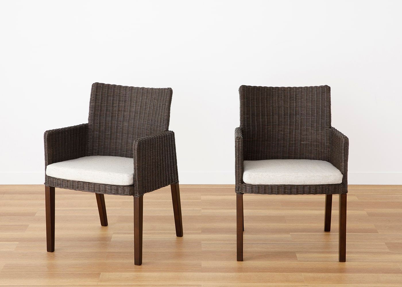 複数の糸で織り上げることで独自の素材感を生み出した日本製のファブリックであるムン・ダイニングアームチェア (ラタン) カバー (プラノ)。温かみのある3色からお好きな色をお選びください。(写真はPLダークブラウン。椅子1脚分のカバー販売となります)
