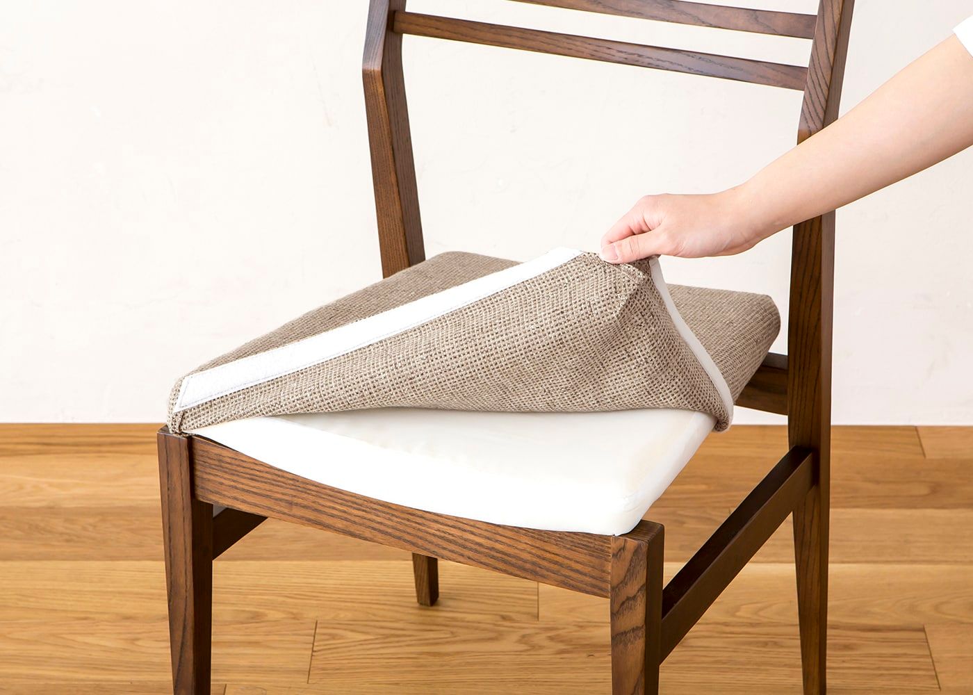 座面にカバーを被せてマジックテープで固定するだけで、簡単にカバー交換ができます。