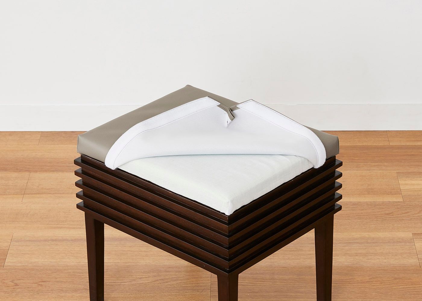 艶やかな本革の質感を表現した、しなやかで滑らかな肌触りが特長のルーバー・ドレッサースツールカバー (クリーンレザー)。3色のカラーバリエーションからお好みのカラーをお選びください。