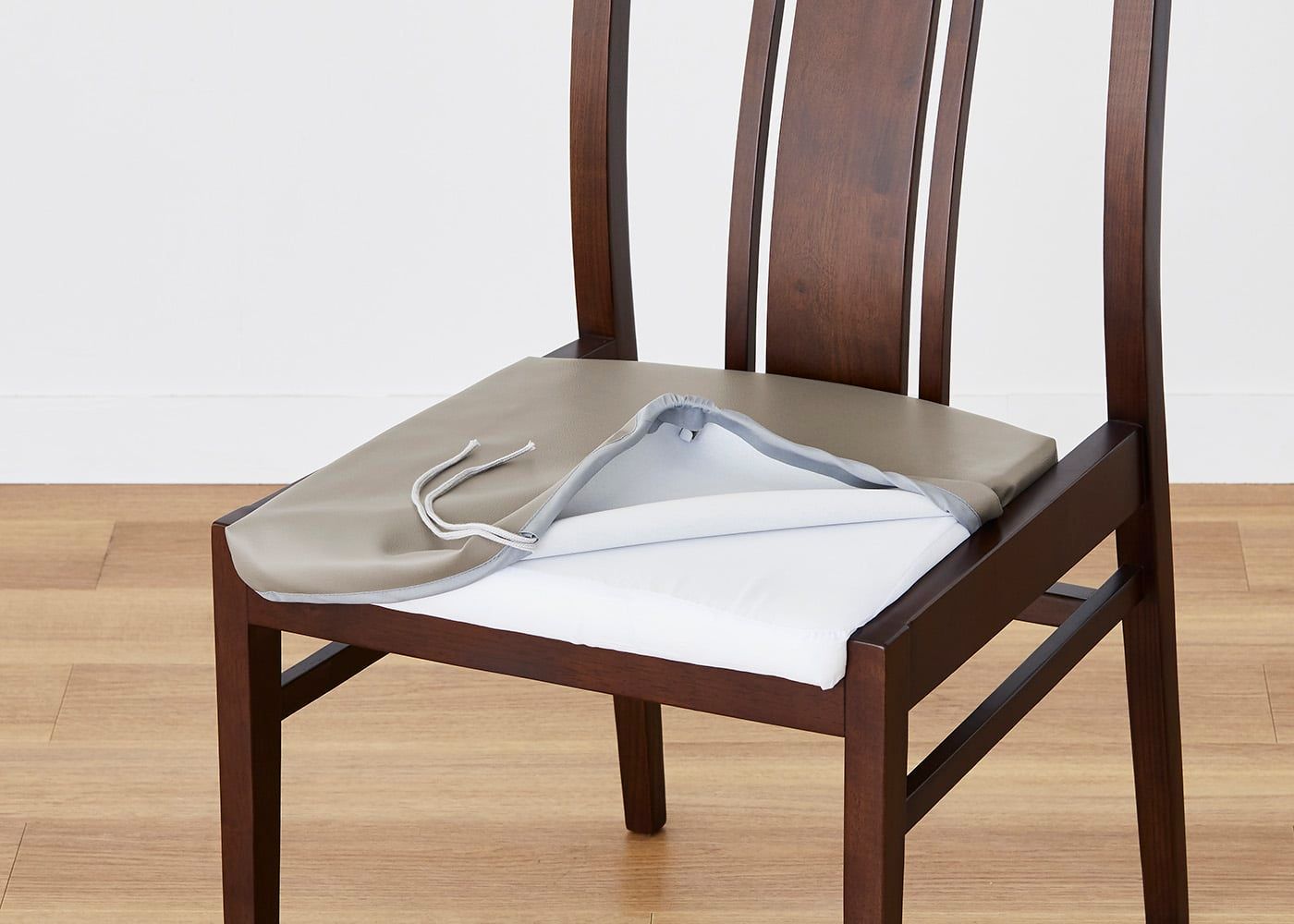 座面にカバーを被せて紐で固定するだけで、簡単にカバー交換ができます。
