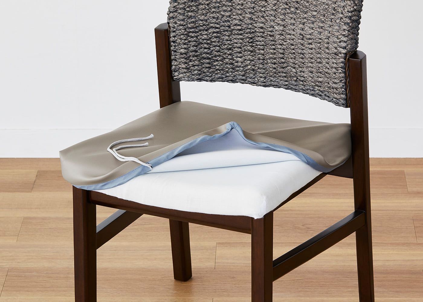 座面にカバーを被せて紐で固定するだけで、簡単にカバー交換ができます。