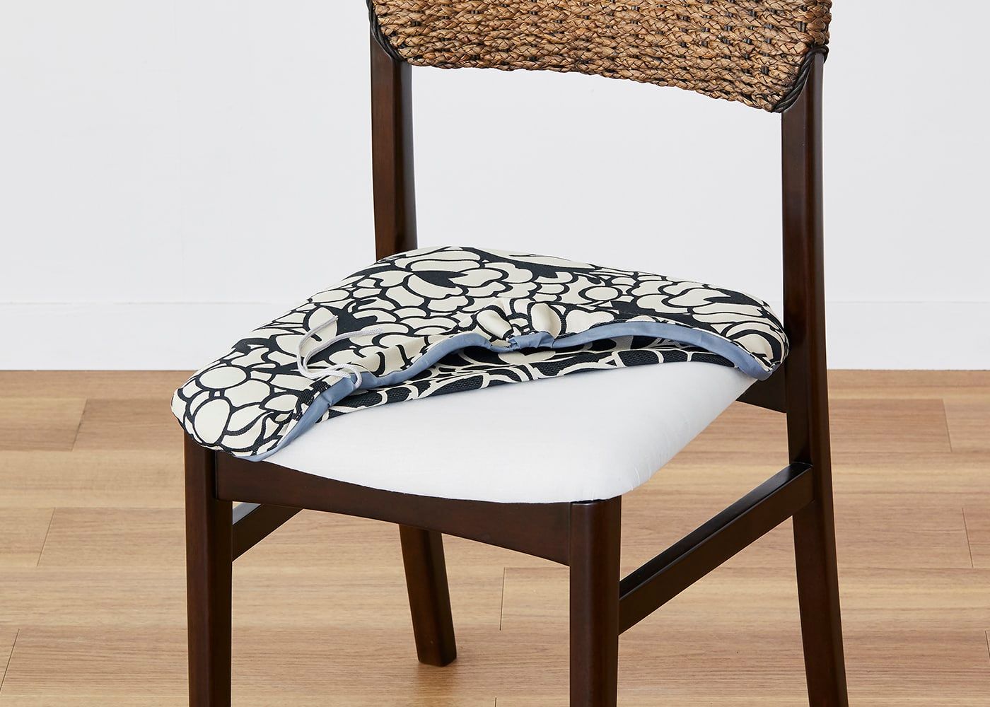 座面にカバーを被せて紐で固定するだけで、簡単にカバー交換ができます。