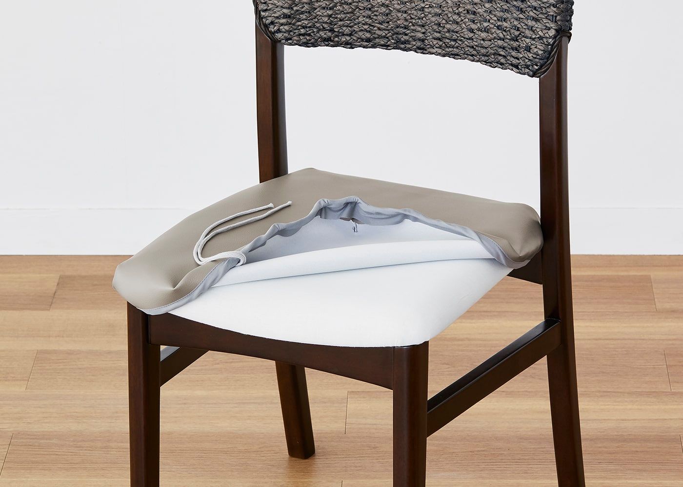 座面にカバーを被せて紐で固定するだけで、簡単にカバー交換ができます。