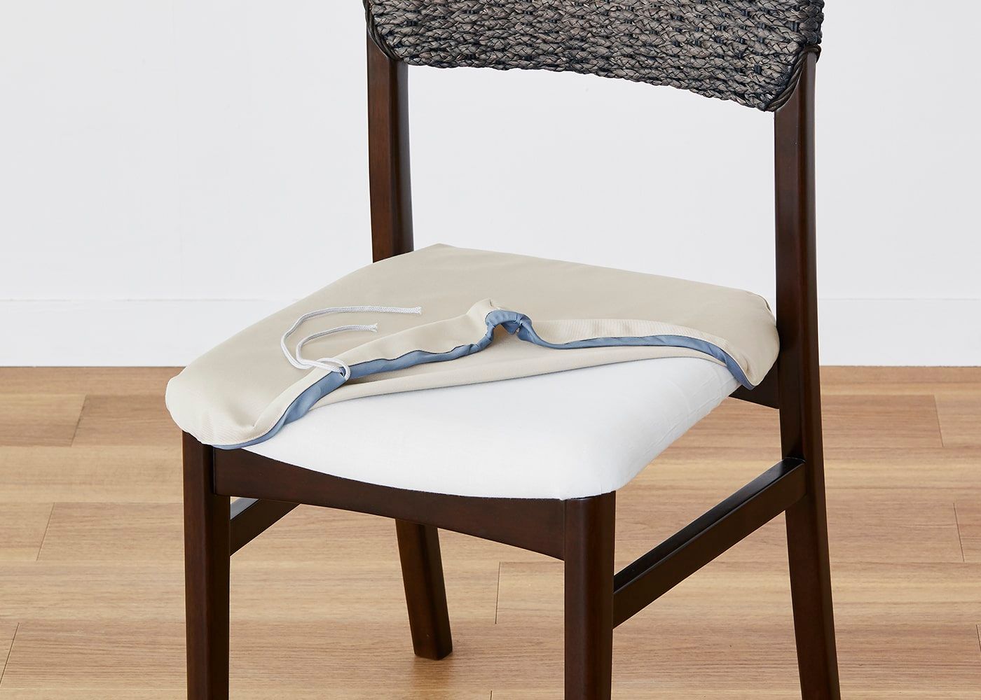 座面にカバーを被せて紐で固定するだけで、簡単にカバー交換ができます。