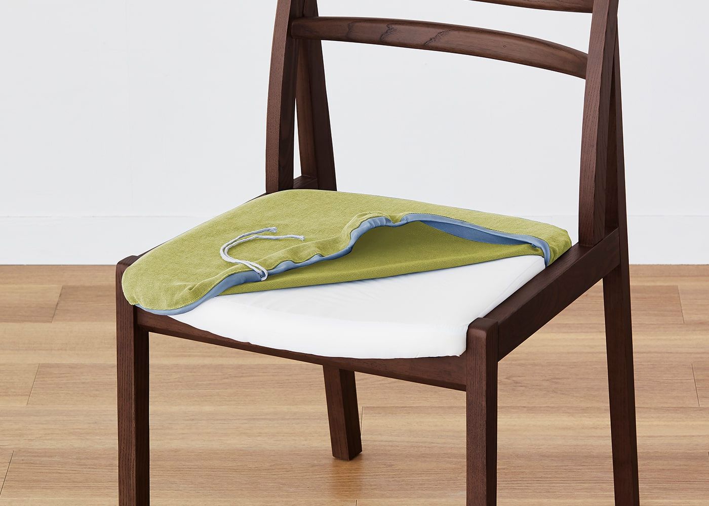 座面にカバーを被せて紐で固定するだけで、簡単にカバー交換ができます。